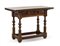 Due tavoli da parete in legni vari con gambe tornite raccordate da traverse, un cassetto nella fascia, uno con piano a bordura unghiata (cm 114x83x56 e 126x81x60) (difetti)