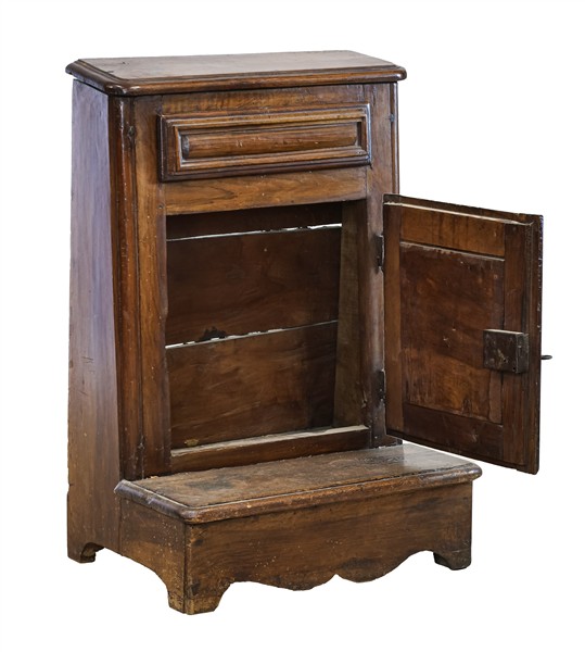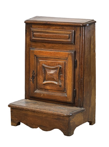 Inginocchiatoio in noce con fronte ad un'anta bugnata e un cassetto. Secolo XVIII (cm 63x92x46) (difetti)