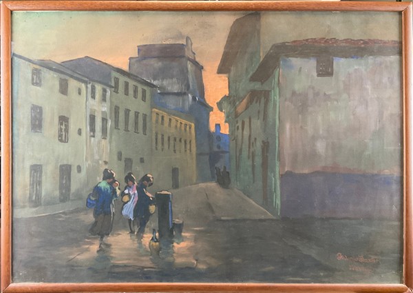 Federico Sartori "Fanciulli alla fontanella al tramonto" Viareggio, 1932 tecnica