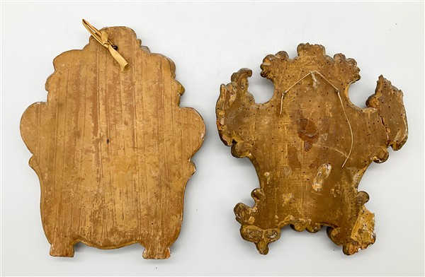 Lotto composto da due piccole cartagloria in legno intagliato e dorato, secolo
