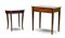 Lotto composto da un tavolino con fronte a un cassetto (cm 83x81,5x52) e un tavolino di forma ovale con cassetto nella fascia e gambe a sciabola (cm 71x68x52) (difetti)