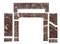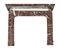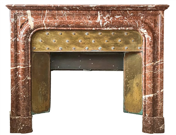 Camino in marmo rosso con bordure modanate e scanalate, fondo in rame e rame ot