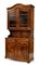 Credenza con vetrina a due corpi impiallacciata in noce e radica di noce, parte