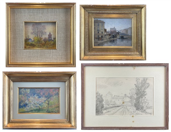 Alfonso Corradi Lotto composto da tre dipinti ad olio e un disegno a carboncino