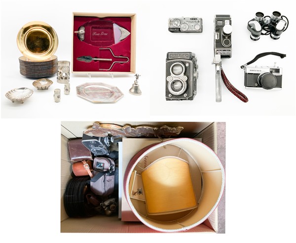 Cartone contenente numerosi oggetti di diverso uso, decoro ed epoca (difetti e