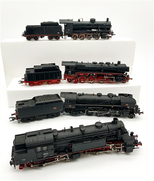 Quattro diverse locomotive a vapore: DB 39.254, Deutsche Reichsbahn 96.022, SNCF 141.R.1207 con 30.R.1207, FS 740.387 (difetti, piccole mancanze e segni d'uso)