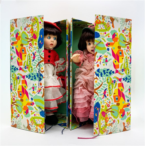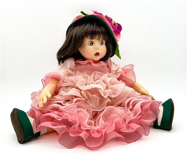 Due diverse bambole in panno Lenci, tulle e organza (h max cm 52). Torino, edizione anni '80, in scatole originali (lievi difetti)