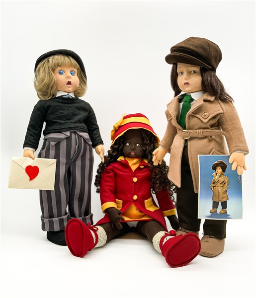 Tre diverse bambole in panno Lenci tra cui il modello "Nanni" (h cm 50). Torino, edizione anni '80/'90, in scatole originali (lievi difetti)