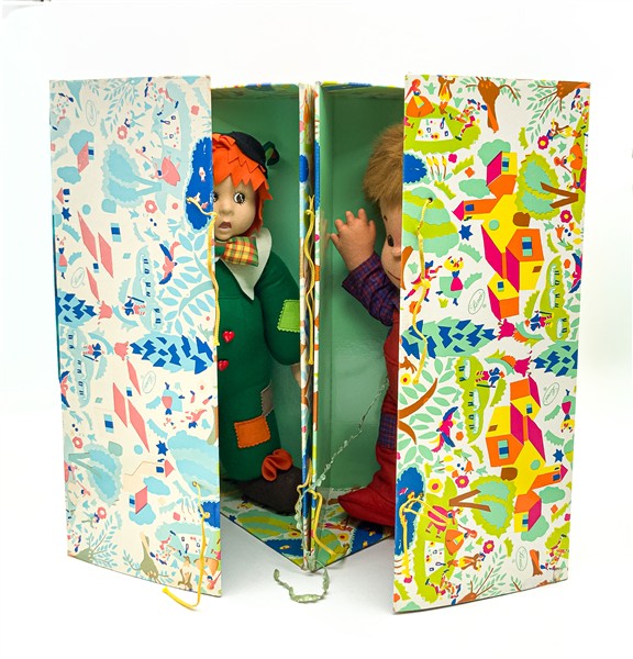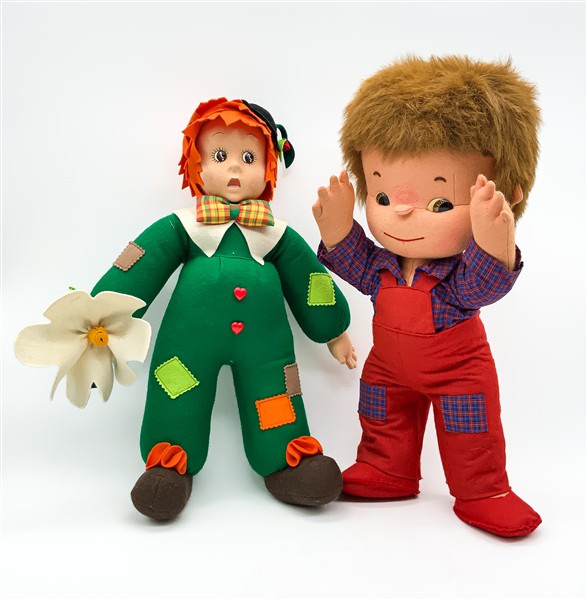 Lenci Due diverse bambole in panno Lenci (h cm 46). Torino, edizione anni '80/'9