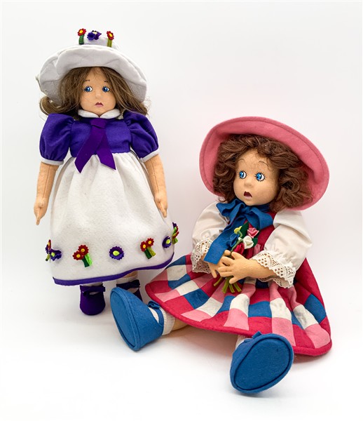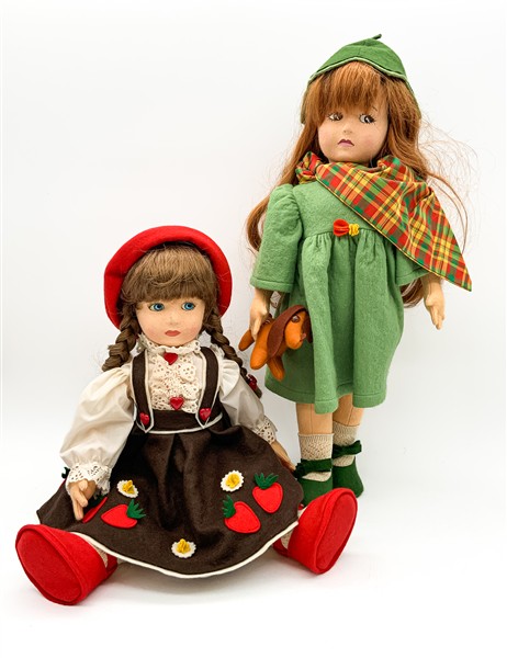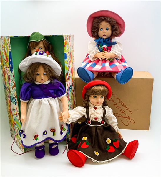 Gruppo di quattro diverse bambole in panno Lenci (h max cm 50). Torino, edizione anni '80/'90, una in scatola originale (lievi difetti)