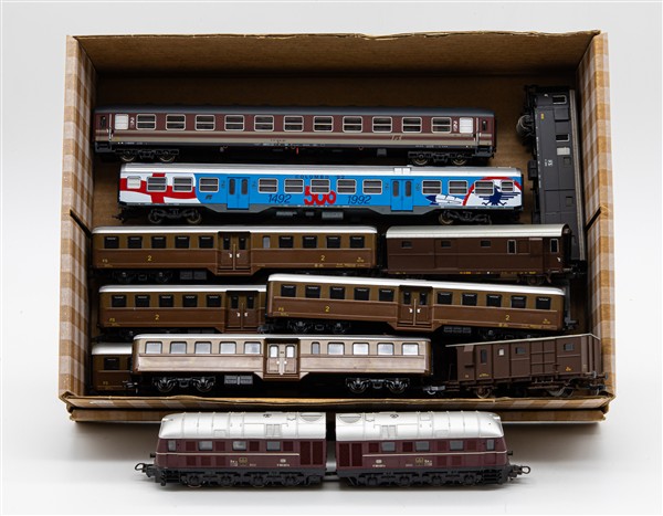 Lot 1117 | Lotto composto da tre cartoni contenenti convogli ferroviari e carri assortiti