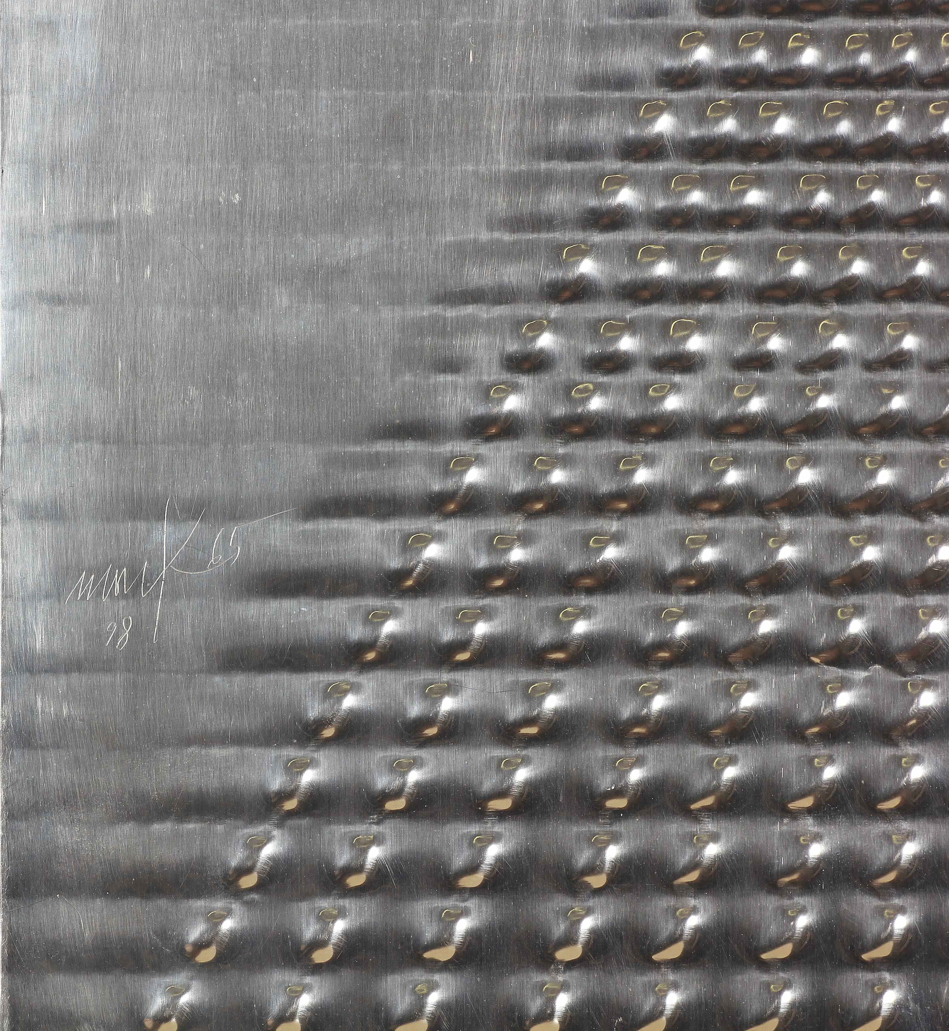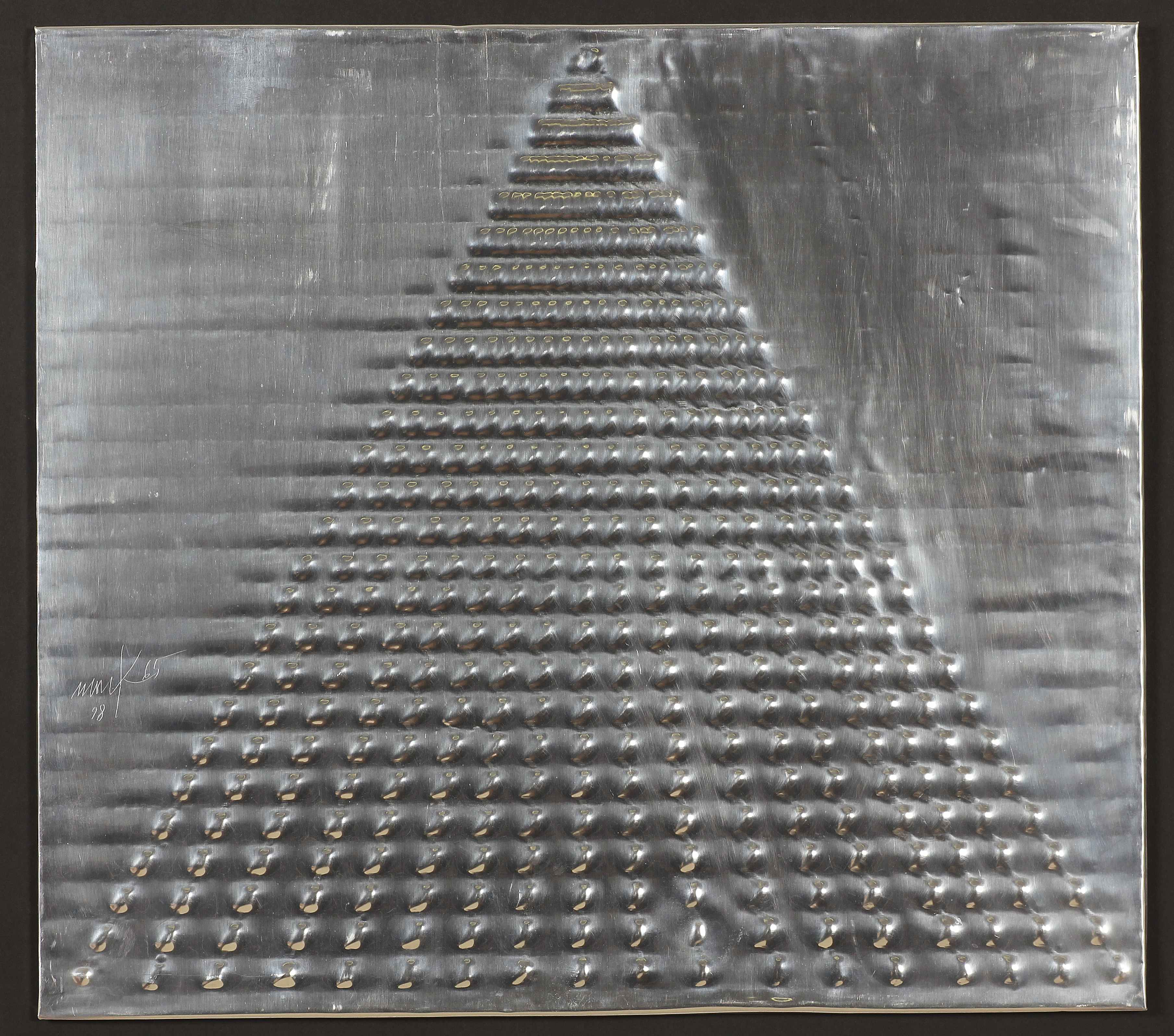 MACK HEINZ (n. 1939) Lichtpyramide. 1965. Rilievi su foglia di metallo. Cm 37,00 x 41,00. 99/100. Firma e anno in basso a sinistra. . Cornice presente