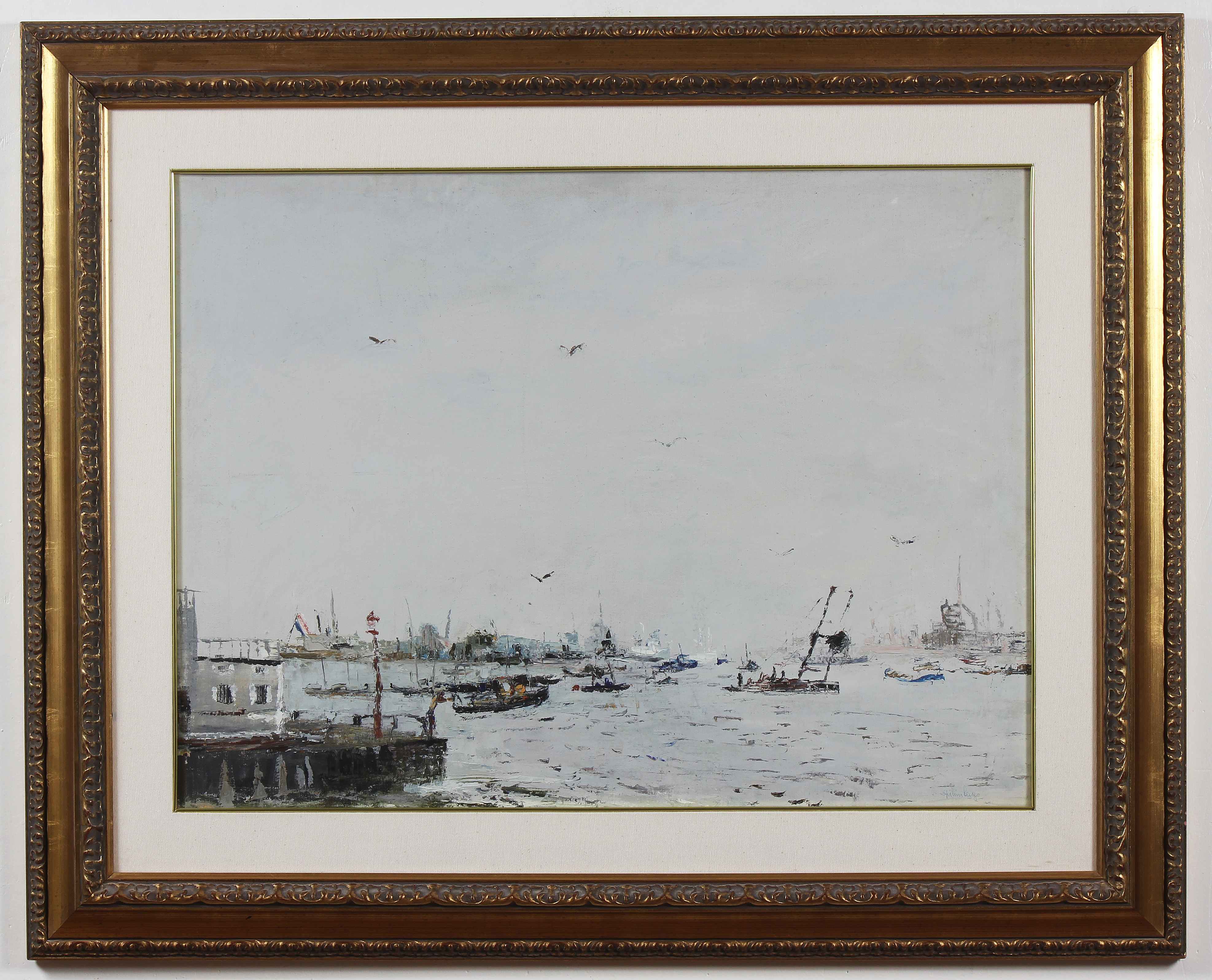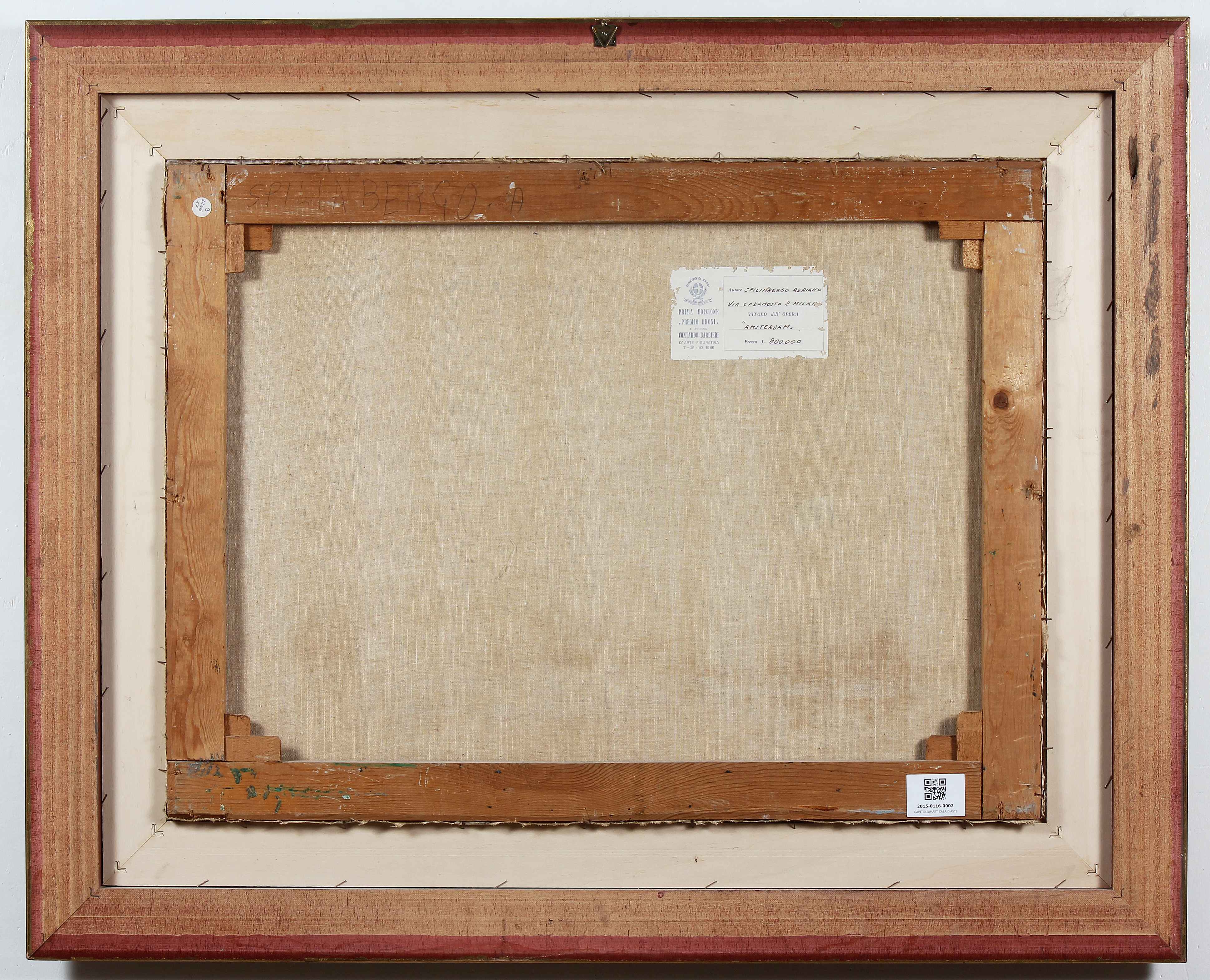 SPILIMBERGO ADRIANO (1908 - 1975) Amsterdam. Olio su tela . Cm 60,00 x 80,00. Firma in basso a destra. Opera archiviata presso l'Archivio degli Artisti della Galleria Ponte Rosso, Milano, come da documentazione fotografica allegata all'opera riportante il relativo numero d'inventario. Cornice presente