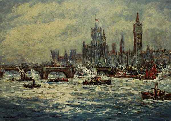 GIOVAN FRANCESCO GONZAGA, "Grigio Londinese", serigrafia su tela, cm 50x70. Al fronte: fima in basso a destra, tiratura in basso a sinistra. Esemplare: CXLVII/CL. Al verso: Timbro. Opera con cerificato di provenienza della galleria Daliano Ribani Arte. Opera senza cornice