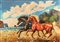 GIOVAN FRANCESCO GONZAGA, "Cavalli", serigrafia su tela, cm 50x70. Al fronte: firma in basso a sinistra, tiratura in basso a destra. Esemplare: 137/250 Al verso: Timbro. Opera con cerificato di provenienza della galleria Daliano Ribani Arte. Opera senza cornice