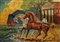 GIOVAN FRANCESCO GONZAGA, "Cavalli con Templio", serigrafia su tela, cm 50x70. Al fronte: fima in basso a destra, tiratura in basso a sinistra. Esemplare: 28/250. Al verso: Timbro. Opera con cerificato di provenienza della galleria Daliano Ribani Arte. Opera senza cornice