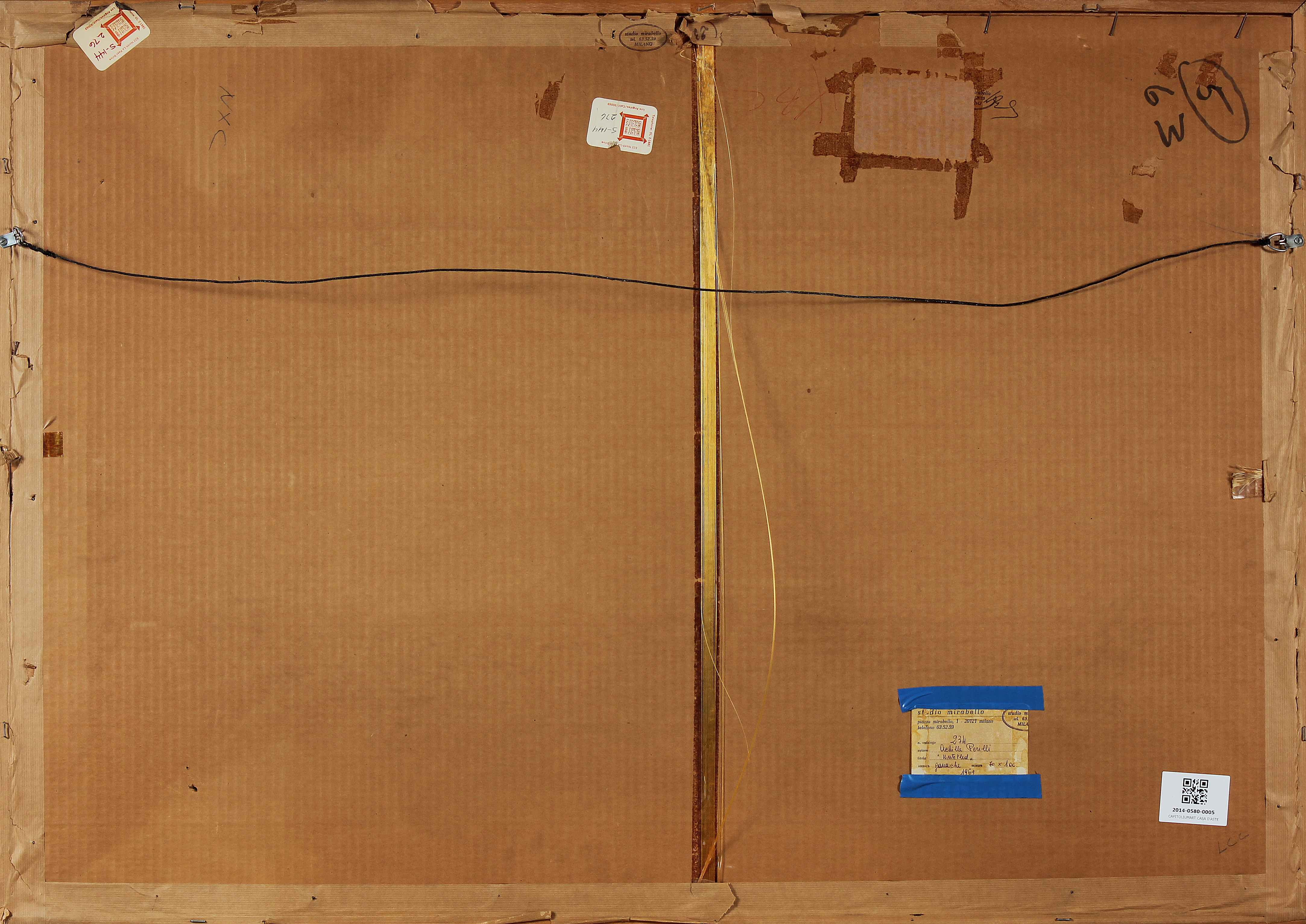 PERILLI ACHILLE (n. 1927) Senza titolo. 1962. Tecnica mista su carta. Cm 100,00 x 70,00. Firma e anno in basso a destra. Al retro reca il cartiglio dello Studio Mirabello, Milano. Opera in fase di archivazione presso l'Archivio Perilli, Roma. Cornice presente