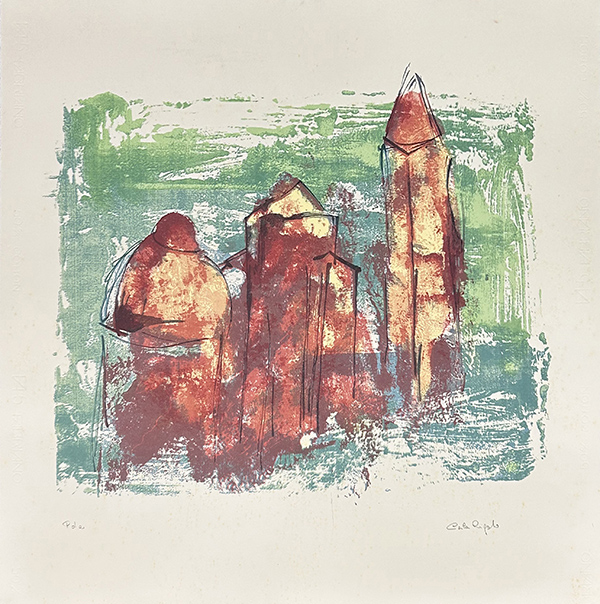 ROBERTO POLONI, litografia su cartoncino, cm 70x80x0,5, kg 0,5. Al fronte: tiratura V/X in basso a sinistra, firma in basso a destra. Al verso: firma. Opera senza cornice