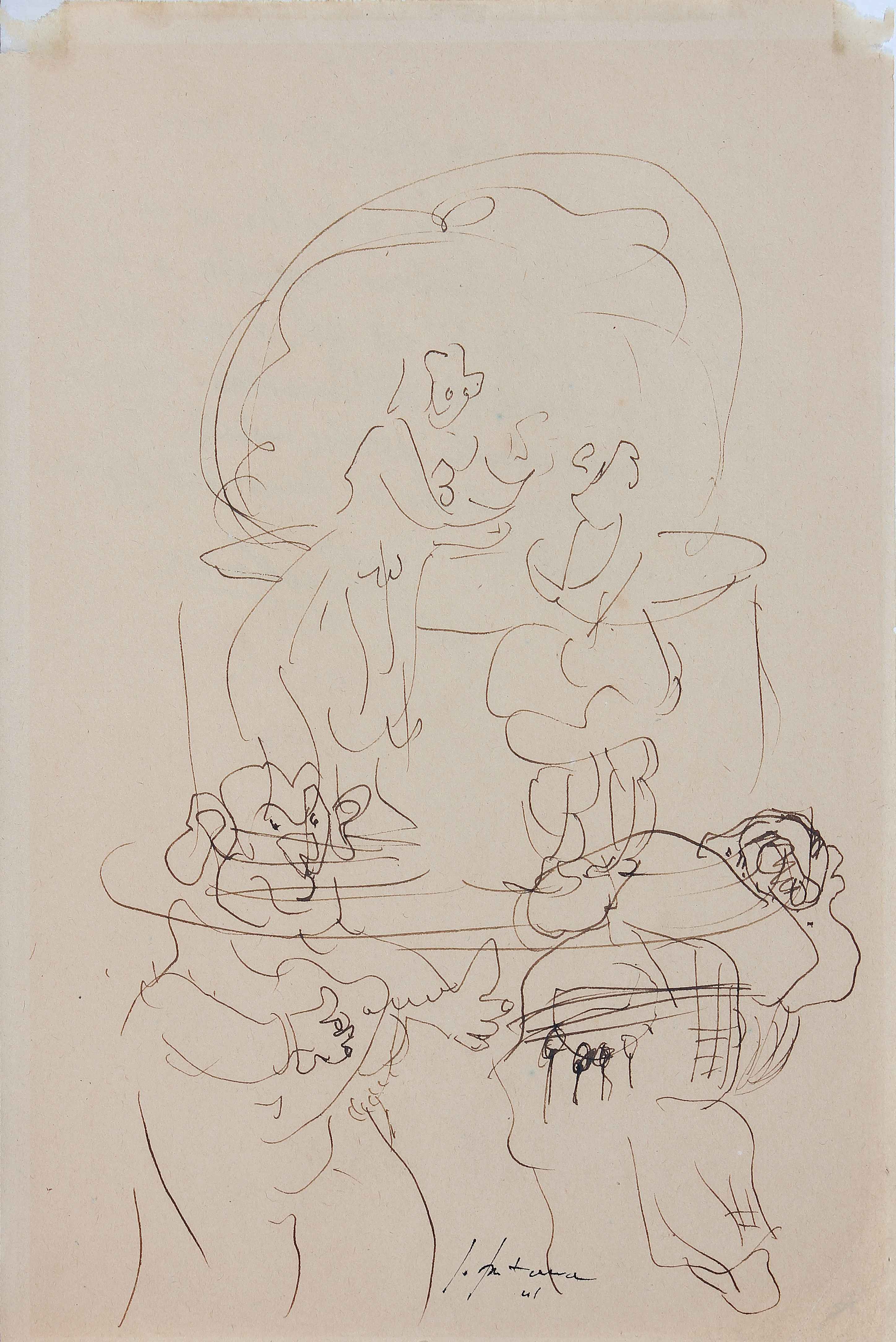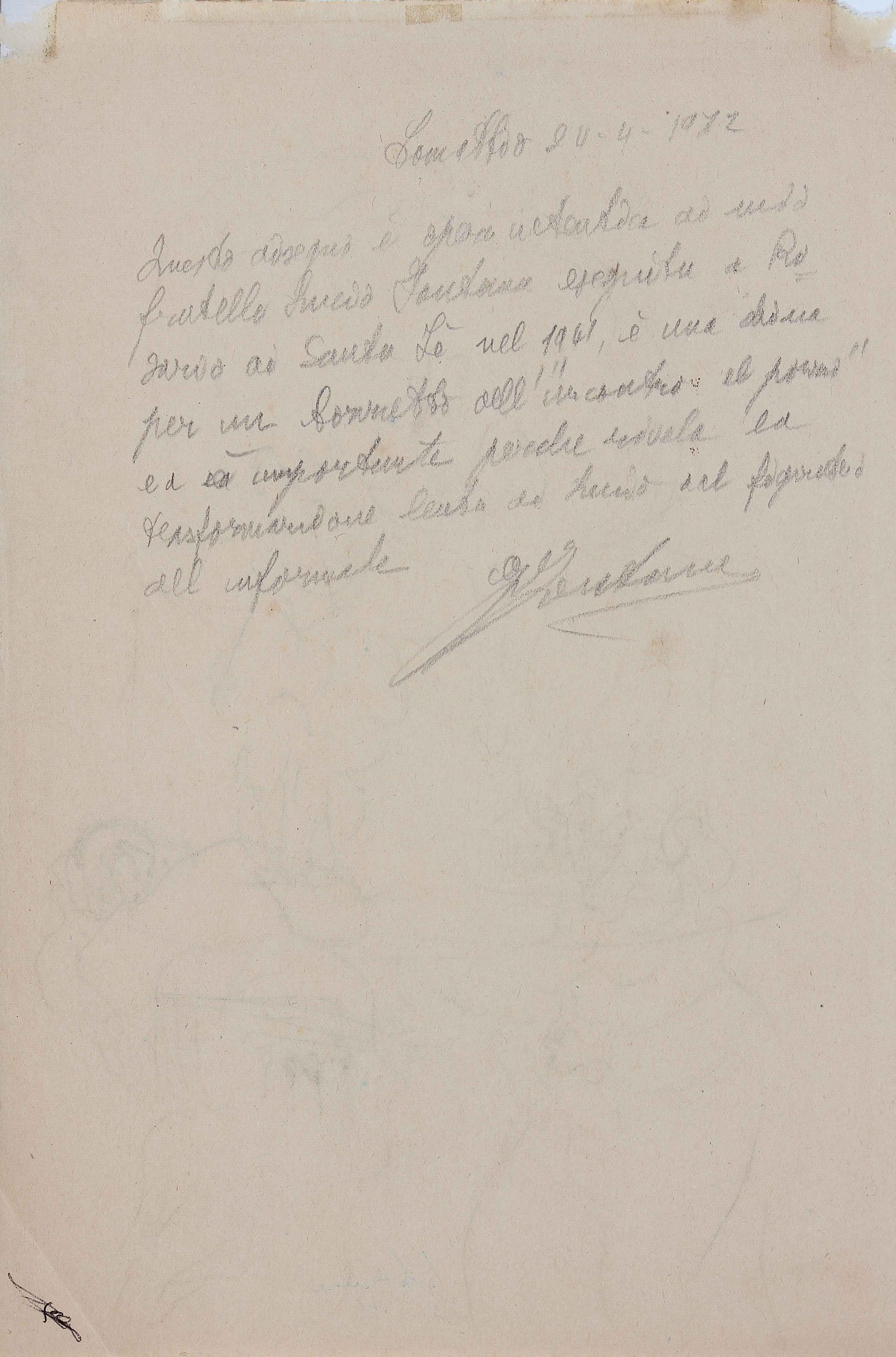 FONTANA LUCIO (1899 - 1960) Bozzetto. 1941. China su carta. Cm 20,50 x 30,50. Firma e anno in basso a biro. Al retro firma per autentica, con indicazione del titolo, del fratello dell'artista. Opera archiviata presso la Fondazione Lucio Fontana, Milano, come da documentazione fotografica allegata all'opera riportante il relativo numero d'inventario.