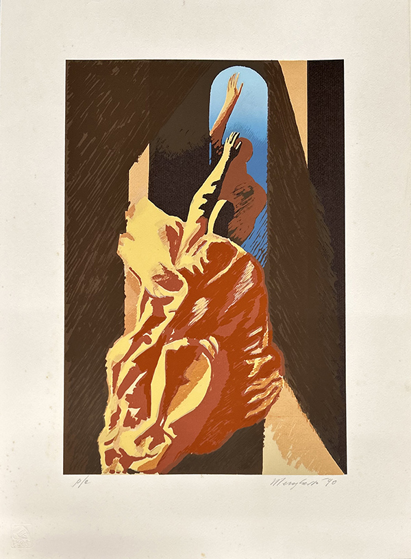 PAOLO MENEGHESSO, 1990, litografia su cartoncino, cm 70x50x0,5, kg 0,5. Al fronte: tiratura P/A in basso a sinistra, firma e anno in basso a destra. Al verso: firma. Opera senza cornice