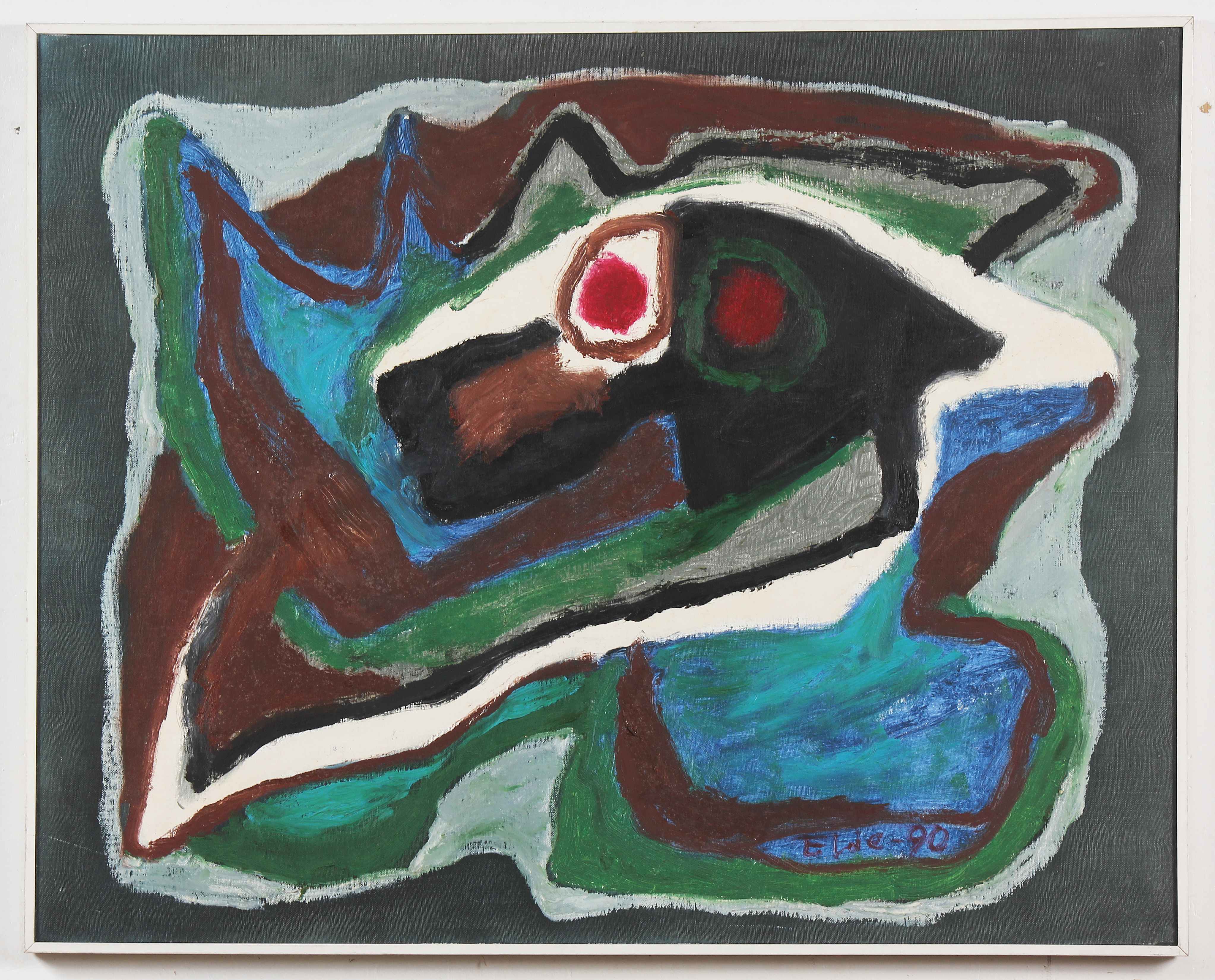ANSGAR ELDE (1933 - 2000) Senza titolo. 1990. Olio su tela . Cm 81,00 x 65,00. Firma e anno in basso a destra. Al retro firma e anno.