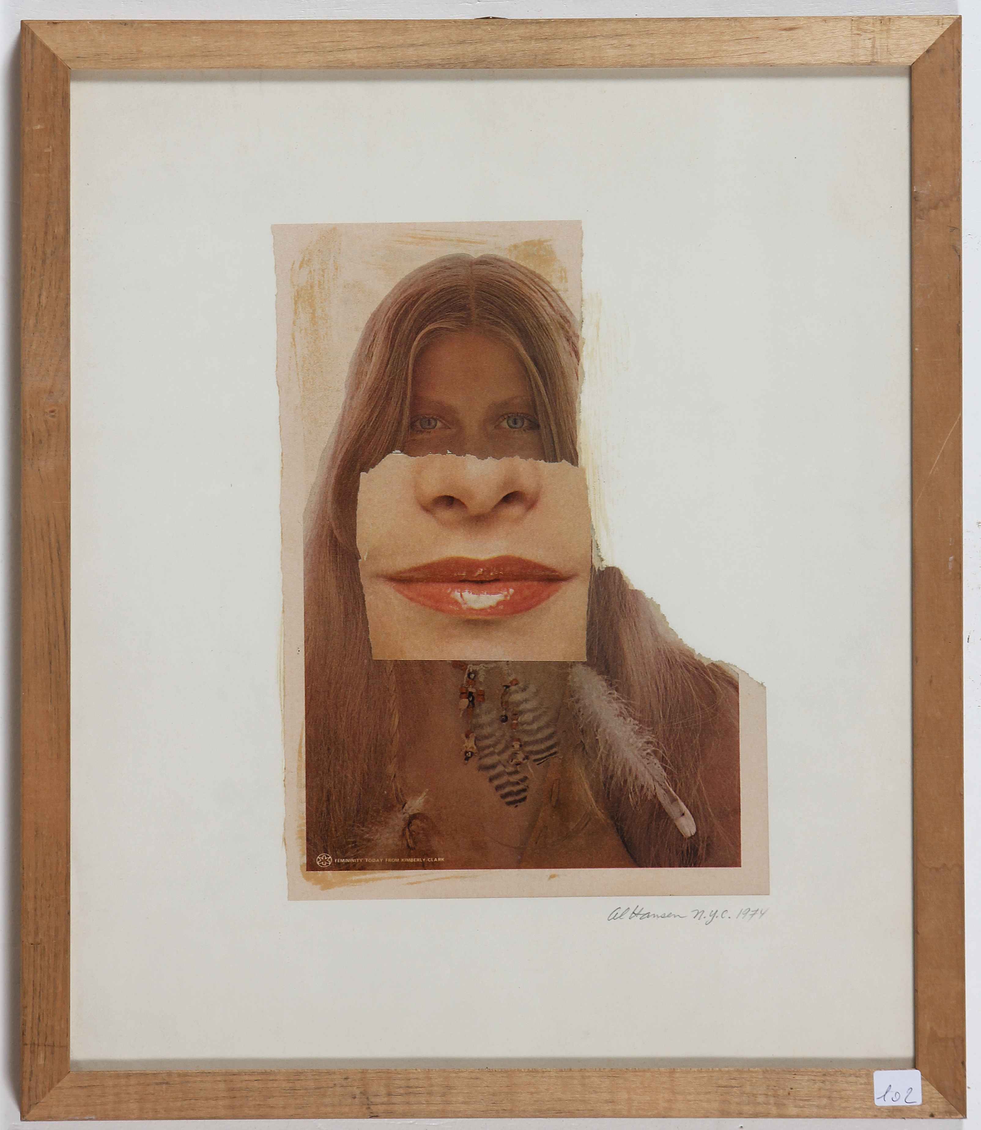 HANSEN AL (1927 - 1995) Senza titolo. 1974. Tecnica mista e collage su cartone. Cm 35,00 x 42,00. Firma e anno a matita in basso a destra. Al retro timbro e firma dell'Archivio Francesco Conz, Verona. Cornice presente