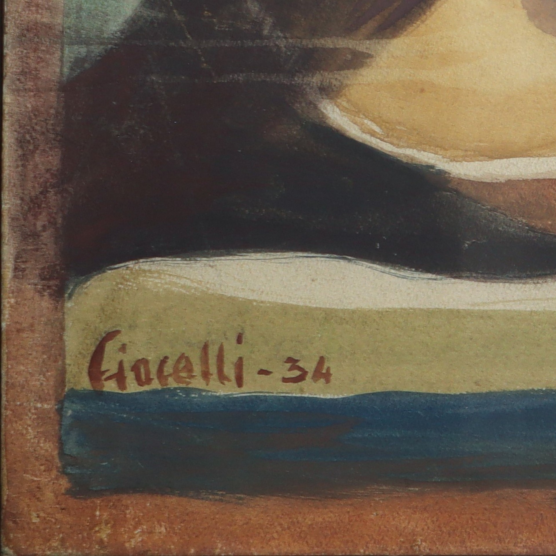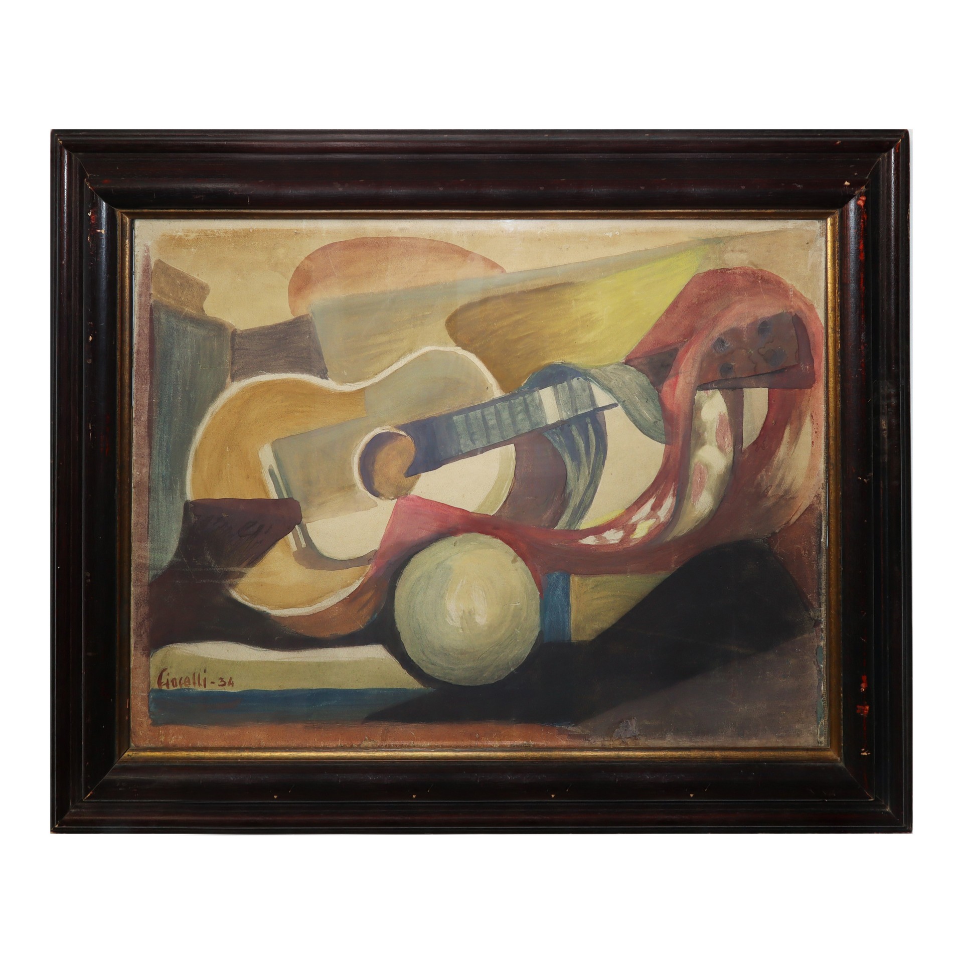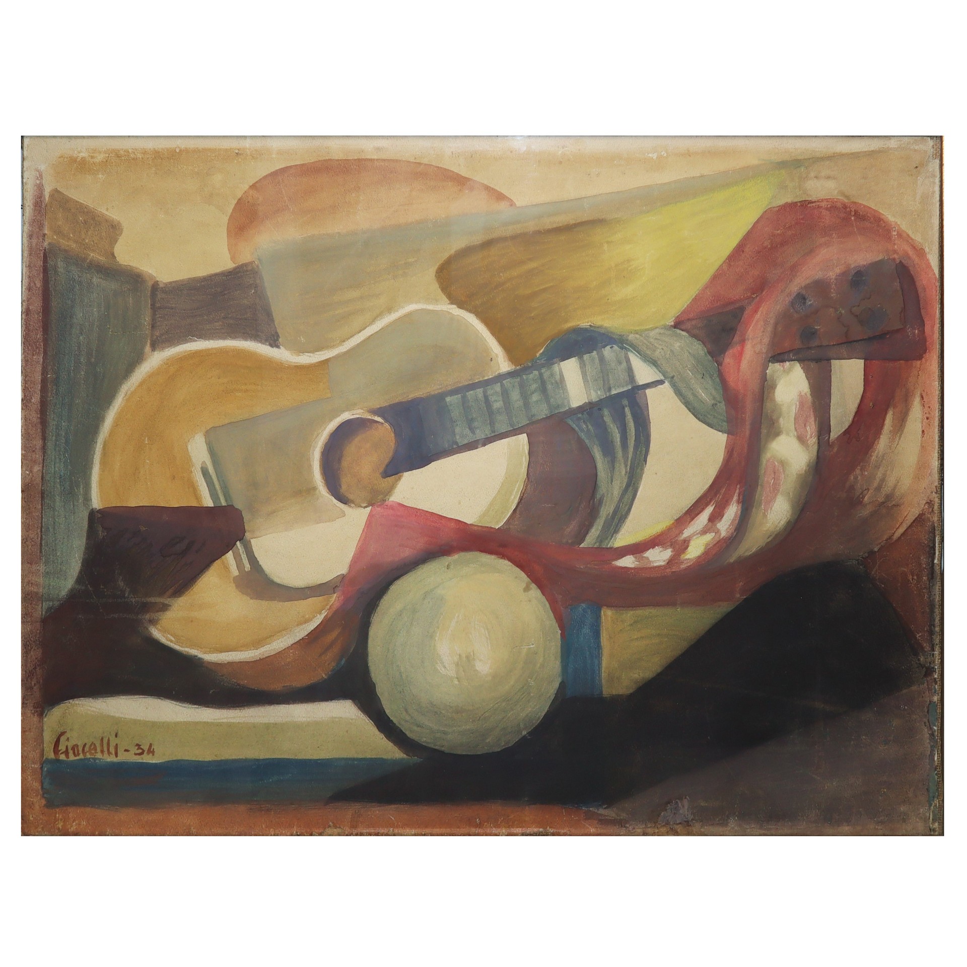 Arturo Ciacelli (Amara 1883 - 1966) - Natura morta con chitarra, 1934 66 x 48 cm, in cornice 64,5 x 83 cm Tempera su carta riportata su tela