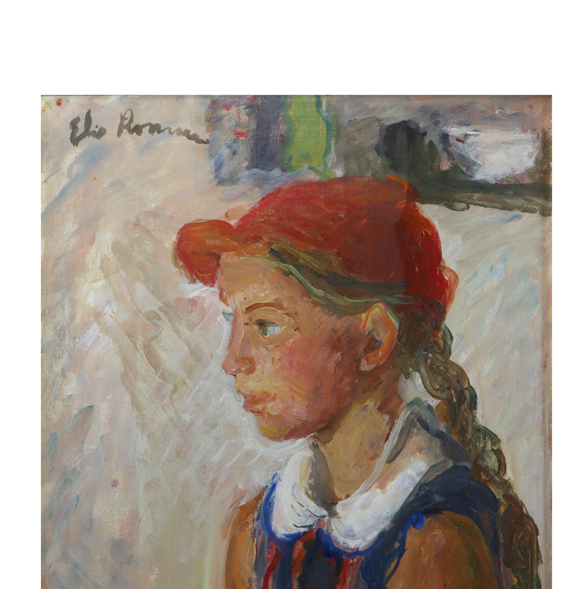Elio Romano (Trapani 1909 - Catania 1996) - Ritratto di giovane ragazza, 20° secolo 70 x 40 cm in cornice 83 x 54 Olio su tela