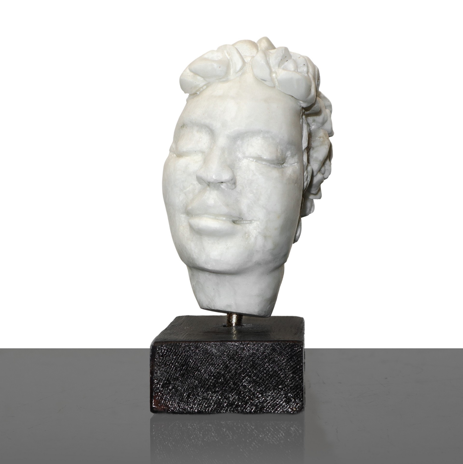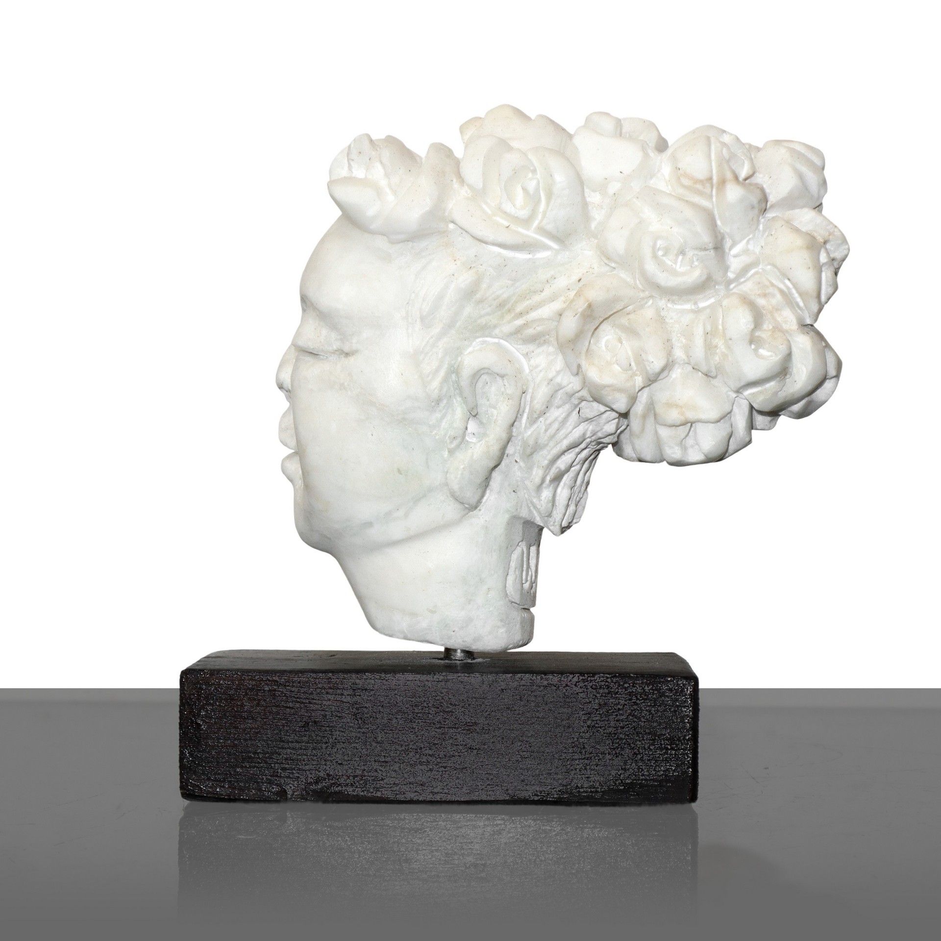 Michele Valenza (Villalba 1950) - Testa fiorita con base h cm 17X15 marmo alabastrino siciliano