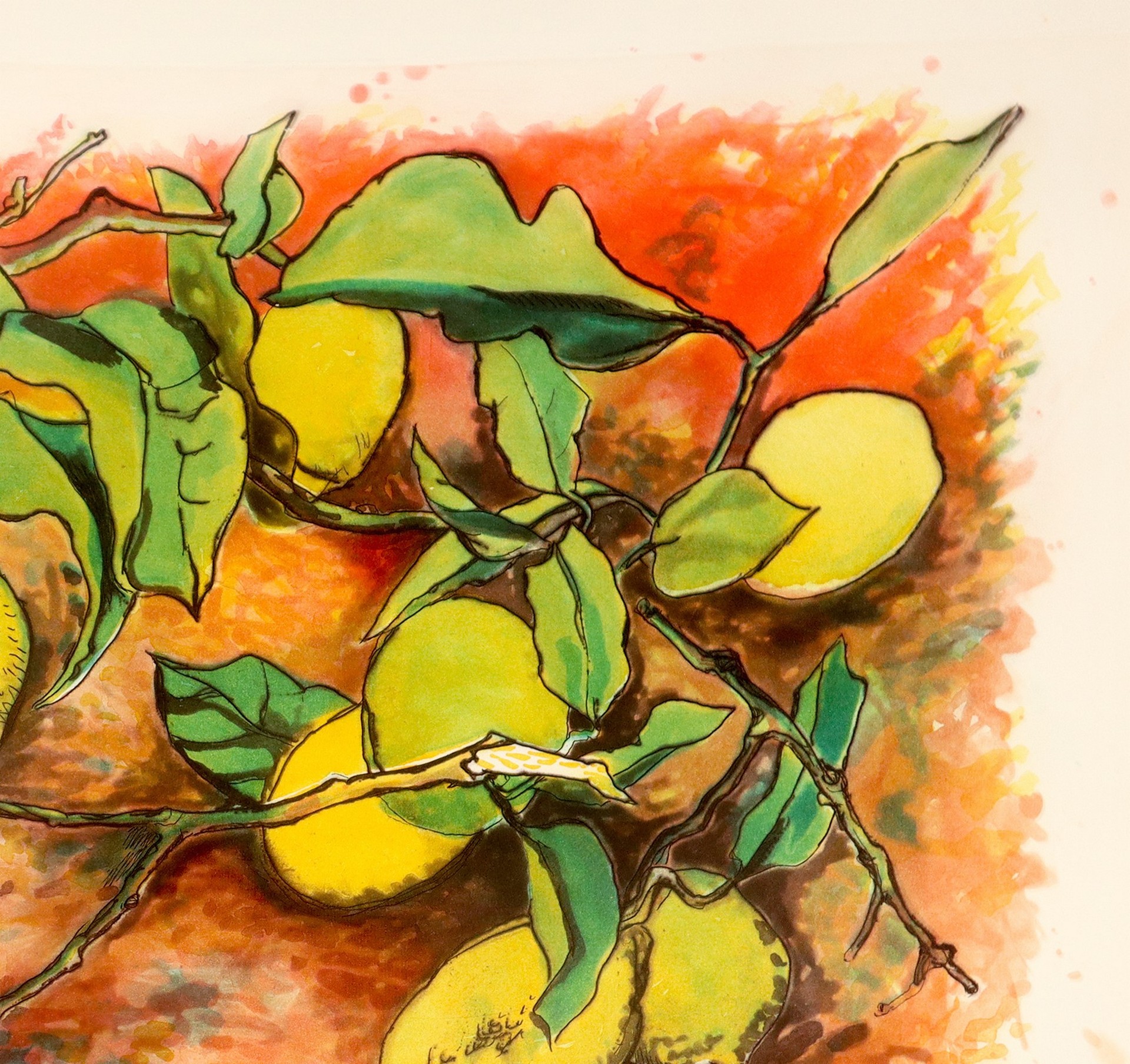 Renato Guttuso (Bagheria 1911 - Roma 1987) - Natura morta con limoni, 20° secolo h cm 71,5x99,5 Firmato in basso a destra; tiratura in basso a sinistra V/X