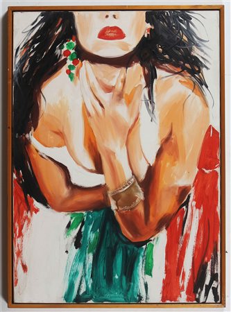 JANUSZ HAKA (n. 1951) Sensualità. Olio su tela . Cm 70,00 x 100,00. Al retro...