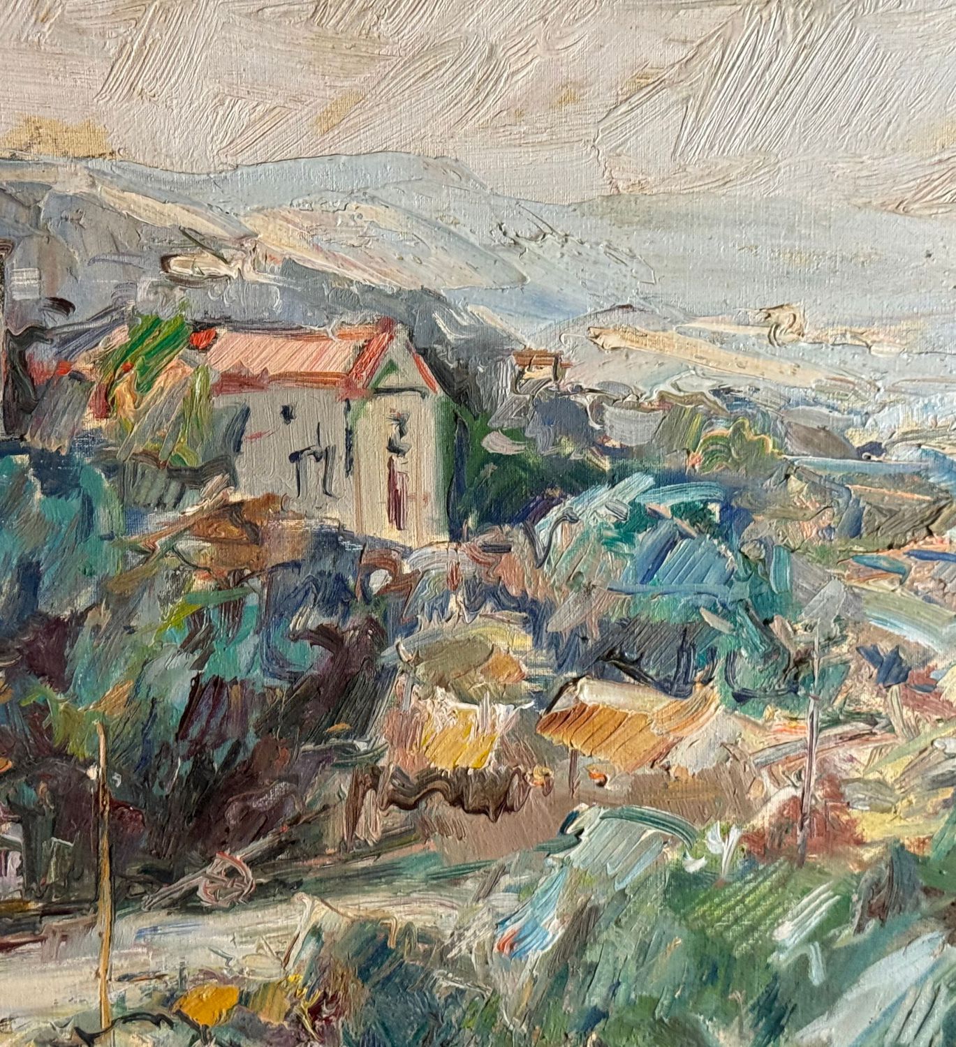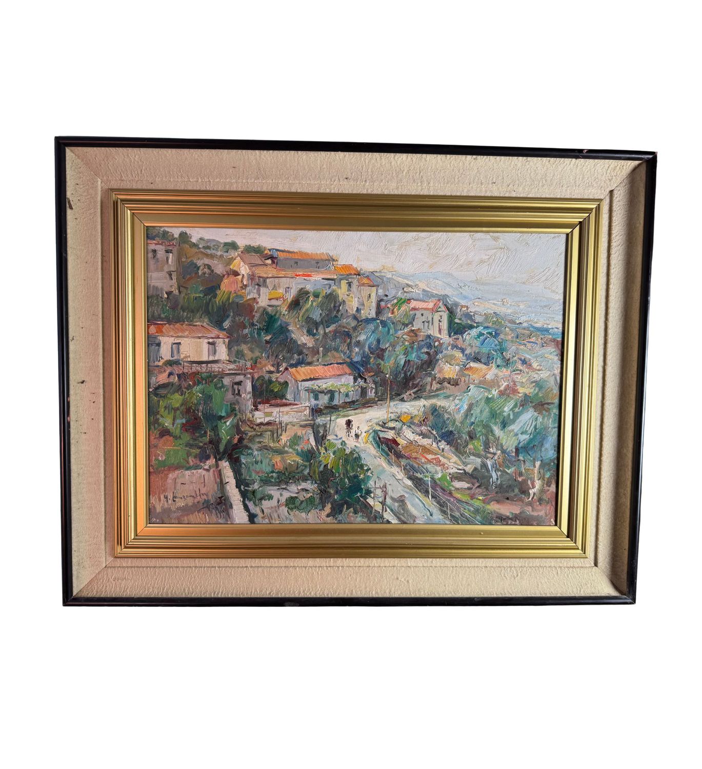 NICOLA CANZANELLA - Dipinto olio su tela, periodo XX secolo, scuola Italiana, raffigurante Paesaggio con case. Dimensioni compreso cornice: 98x78 cm. Dimensioni interno cornice: 50x70 cm. Firmato in basso a sinistra Nicola Canzanella. Opera in buone condizioni e di eccellente qualità artistica.