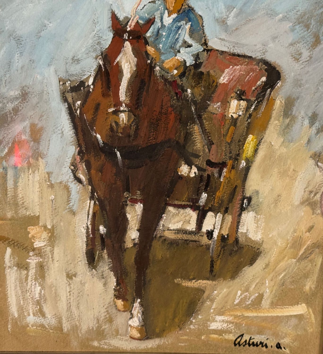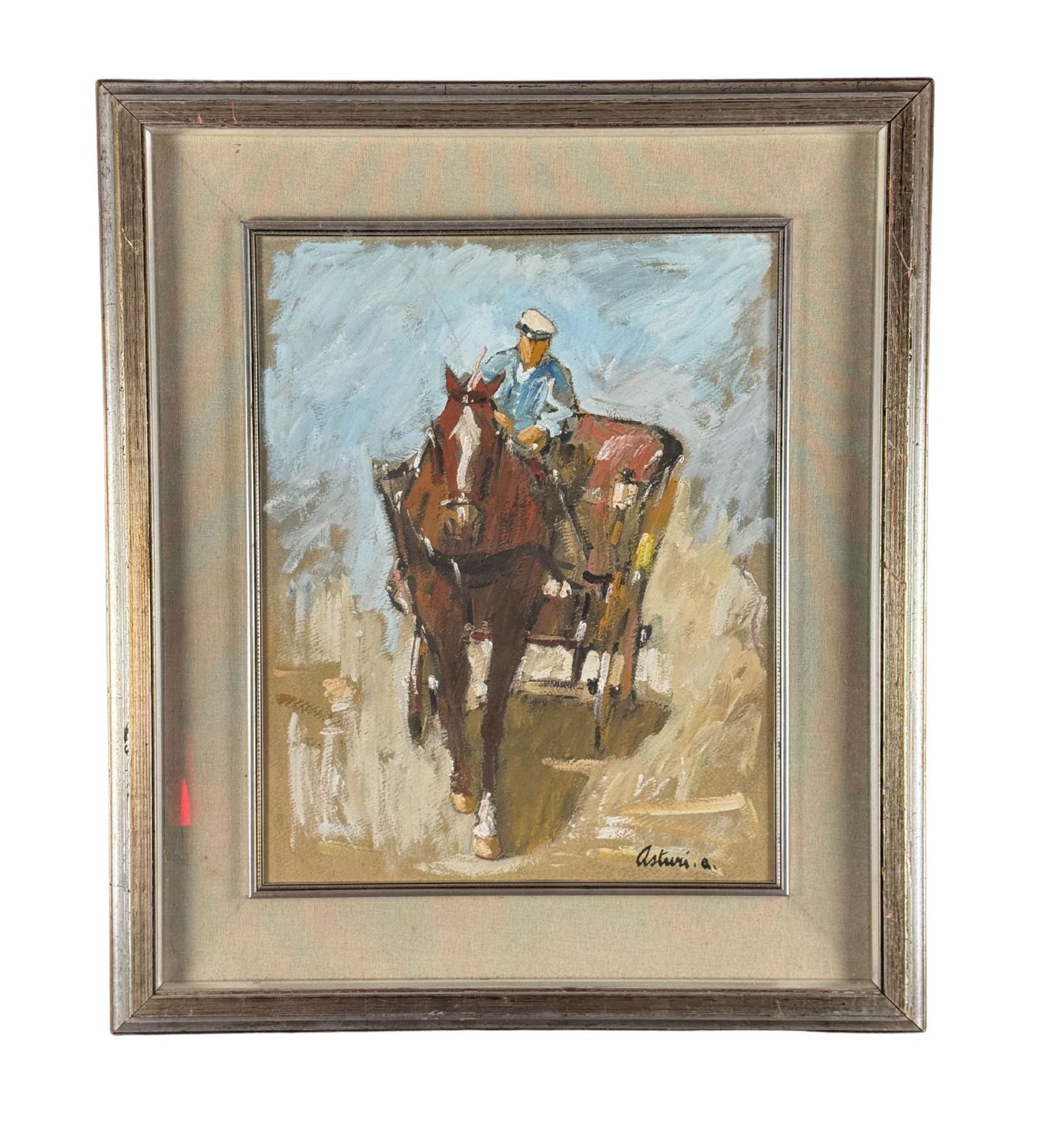 ANTONIO ASTURI - Dipinto olio su cartoncino, periodo XX secolo scuola italiana raffigurante Personaggio in carrozza. Dimensioni compreso cornice: 63x72 cm. Dimensioni interno cornice: 40x50 cm. Firmato in basso a destra Antonio Asturi. Opera in ottime condizioni.