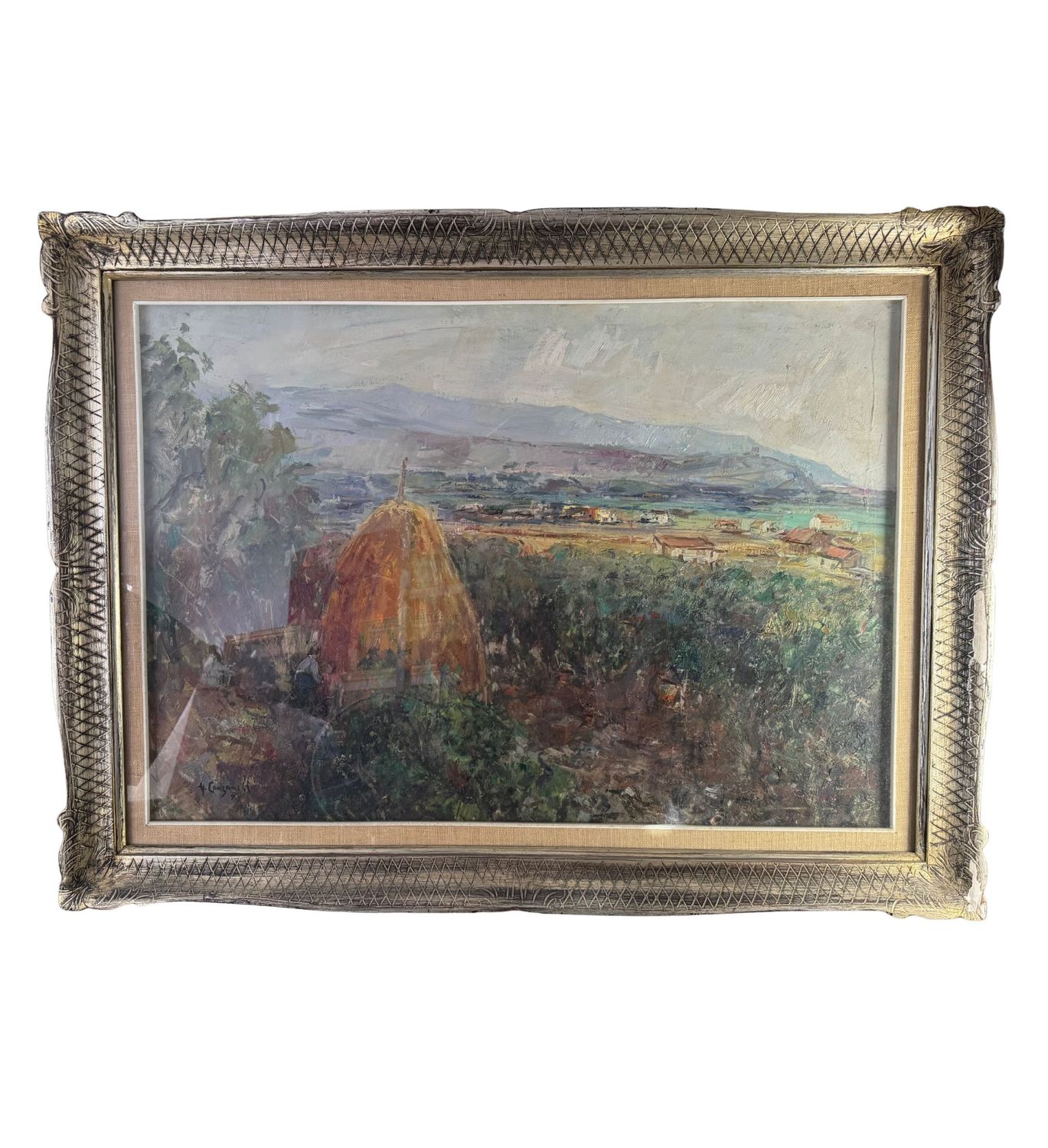 NICOLA CANZANELLA - Dipinto olio su tela, periodo XX secolo, scuola Italiana, raffigurante Paesaggio. Dimensioni compreso cornice: 90x120 cm. Dimensioni interno cornice: 100x70 cm. Firmato in basso a sinistra Nicola Canzanella. Opera in buone condizioni. Cornice da restaurare.