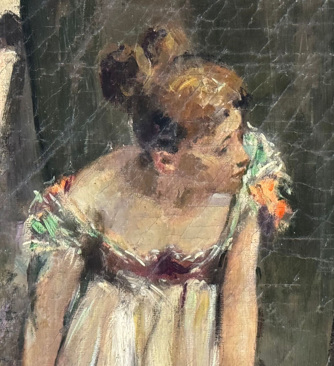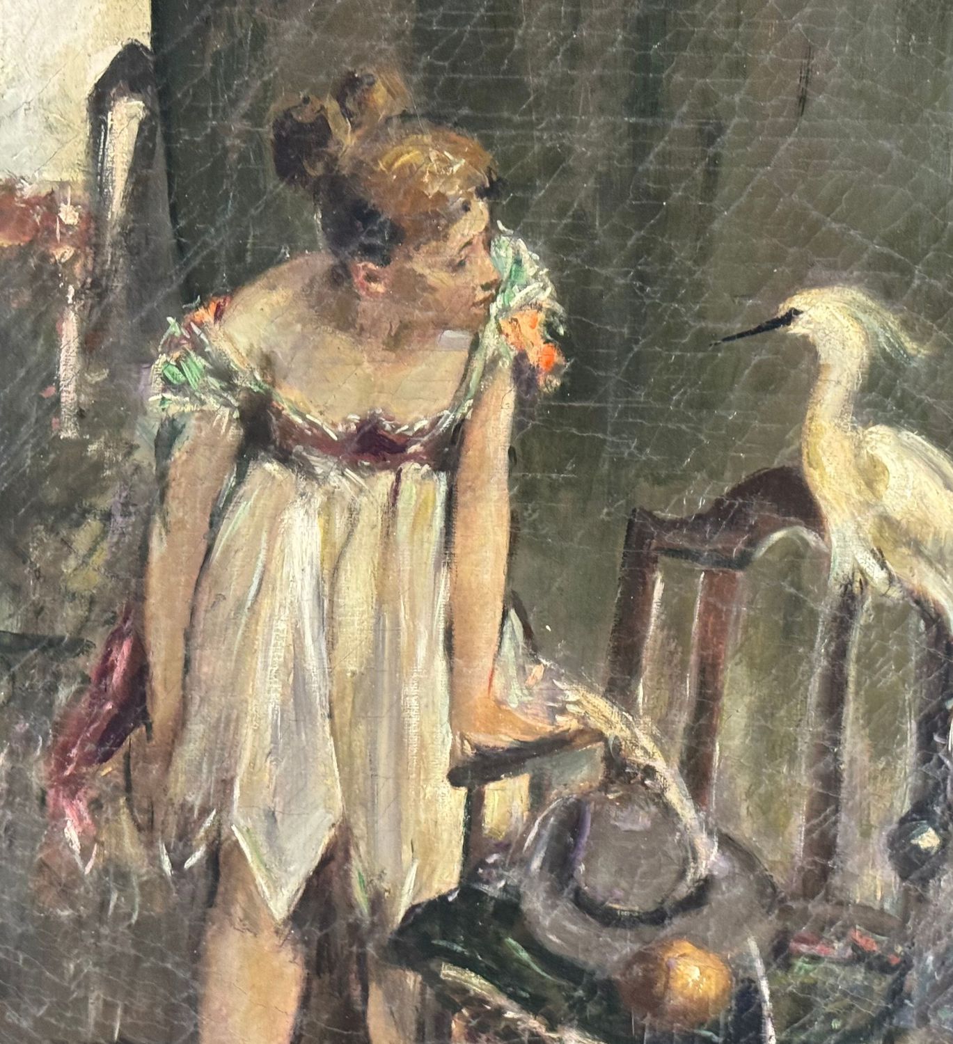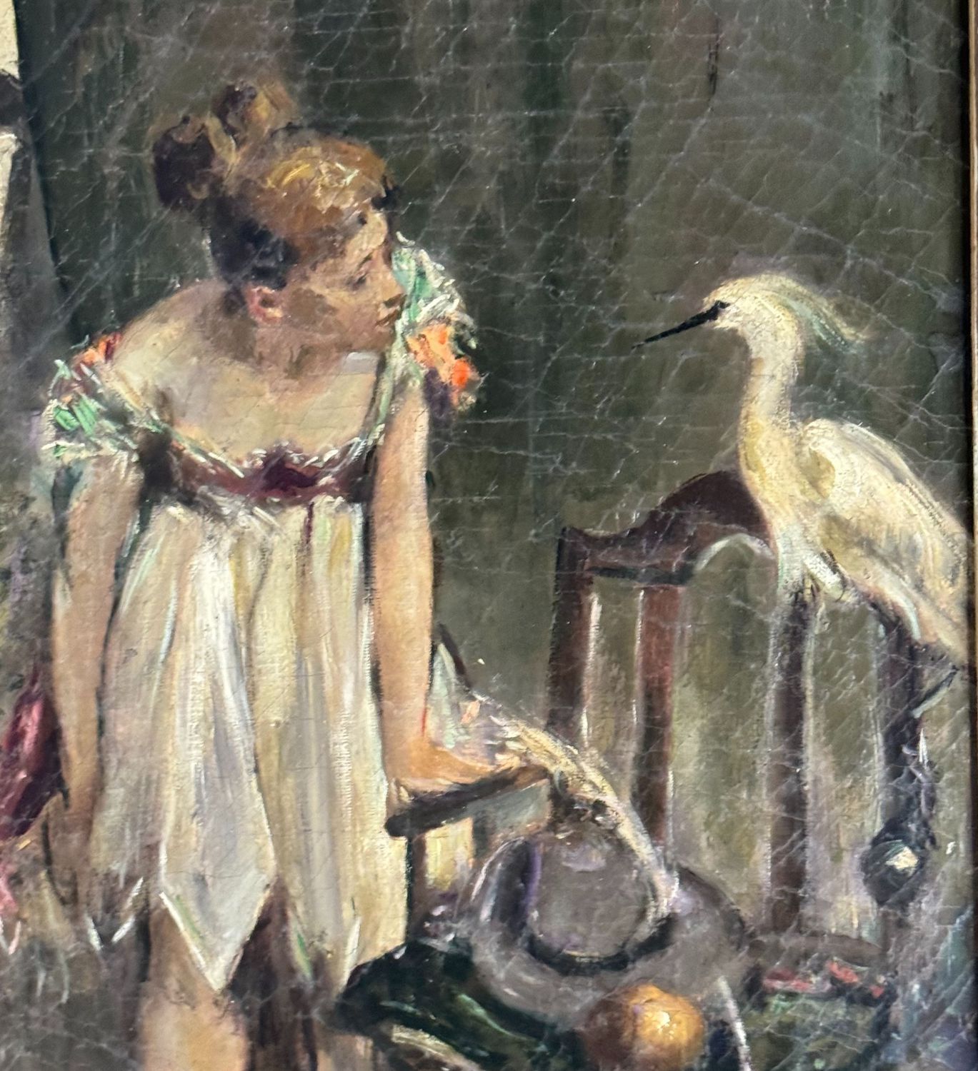 UNIDENTIFIED ARTIST - Dipinto olio su tela, periodo XX secolo scuola Italiana raffigurante Donna con uccello. (Copia d'autore) Dimensioni compreso cornice: 74x104 cm. Dimensioni interno cornice: 60x90 cm. Firmato in basso a sinistra. Opera in discrete condizioni con segni di vissuto come da foto allegate e cornice da restaurare.
