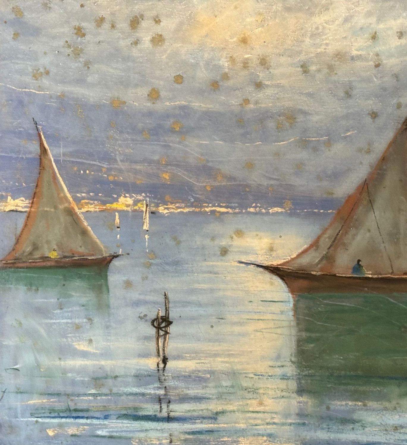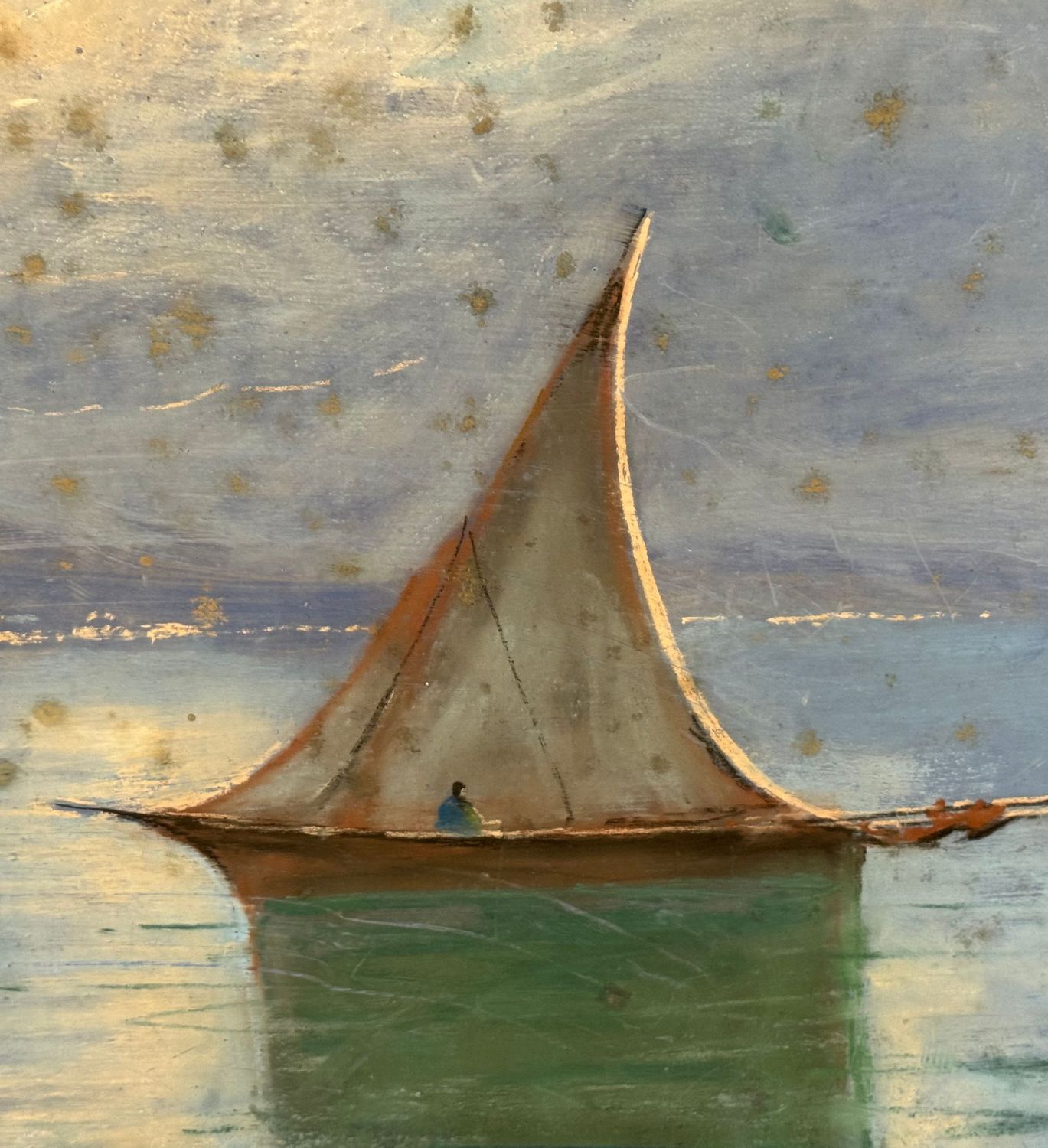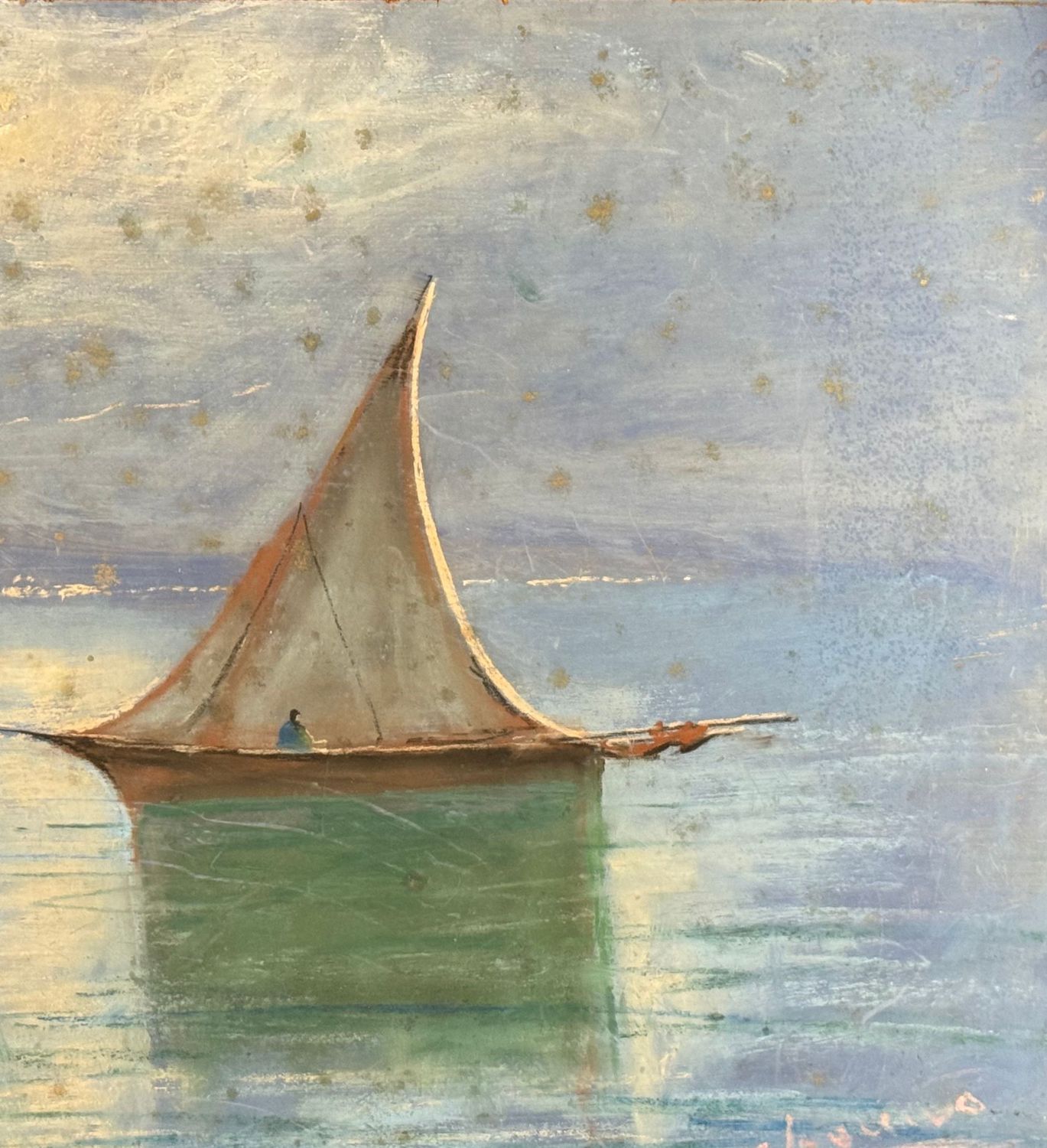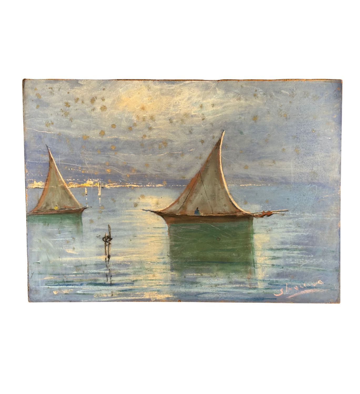 UNIDENTIFIED SIGNATURE - Dipinto tecnica mista su pannello, periodo XX secolo, scuola Italiana, raffigurante Veduta del golfo di Napoli con barca a vela. Dimensioni: 70x50 cm. Firmato in basso a destra Artista non identificato. Opera in discrete condizioni con lievi segni di vissuto come da foto allegate.