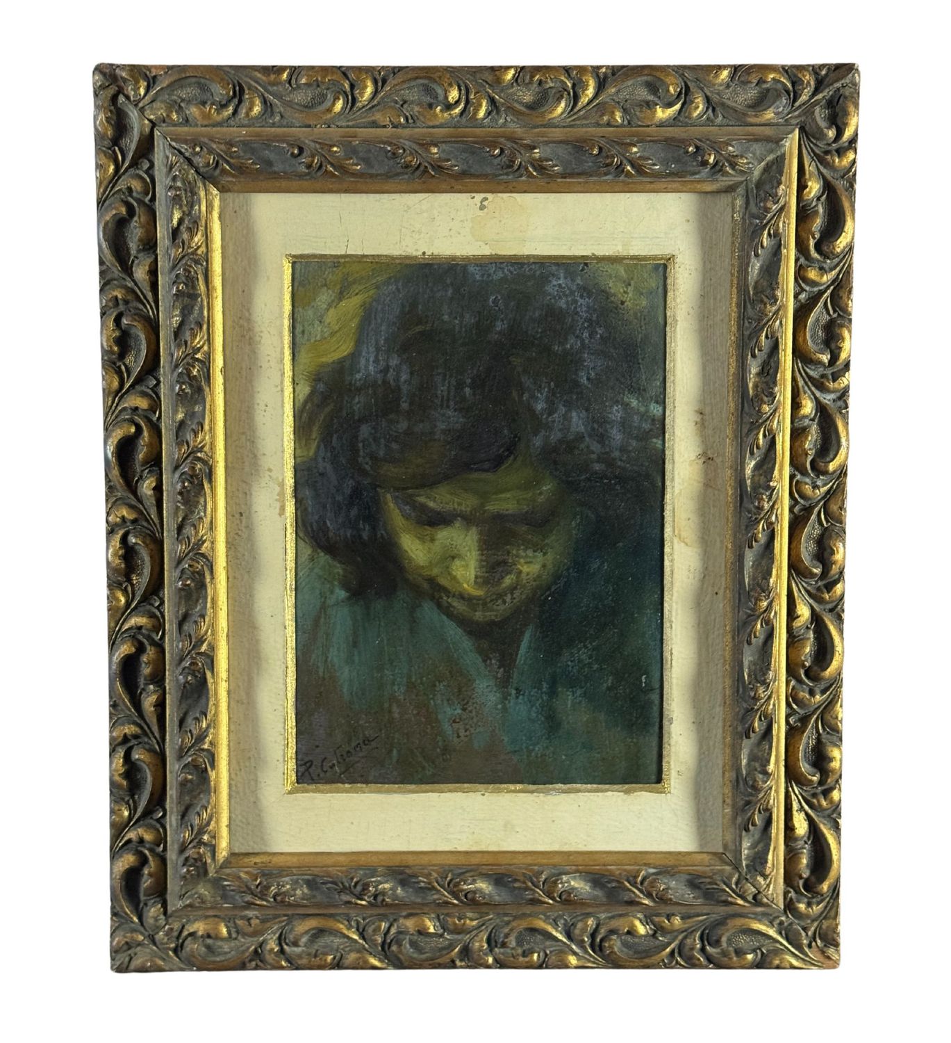 UNIDENTIFIED SIGNATURE - Dipinto olio su cartoncino, periodo prima metà del XX secolo, scuola Italiana, raffigurante Volto di donna. Dimensioni compreso cornice: 37x45 cm. Dimensioni interno cornice: 19x27 cm. Reca firma in basso a sinistra artista non identificato. Opera in buone condizioni.
