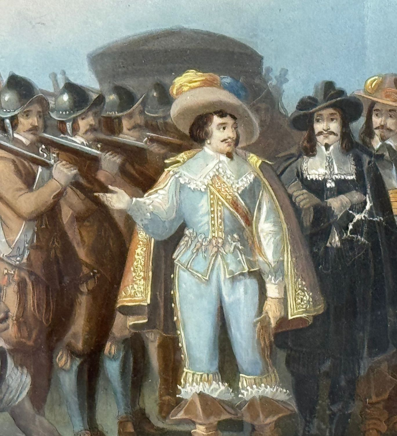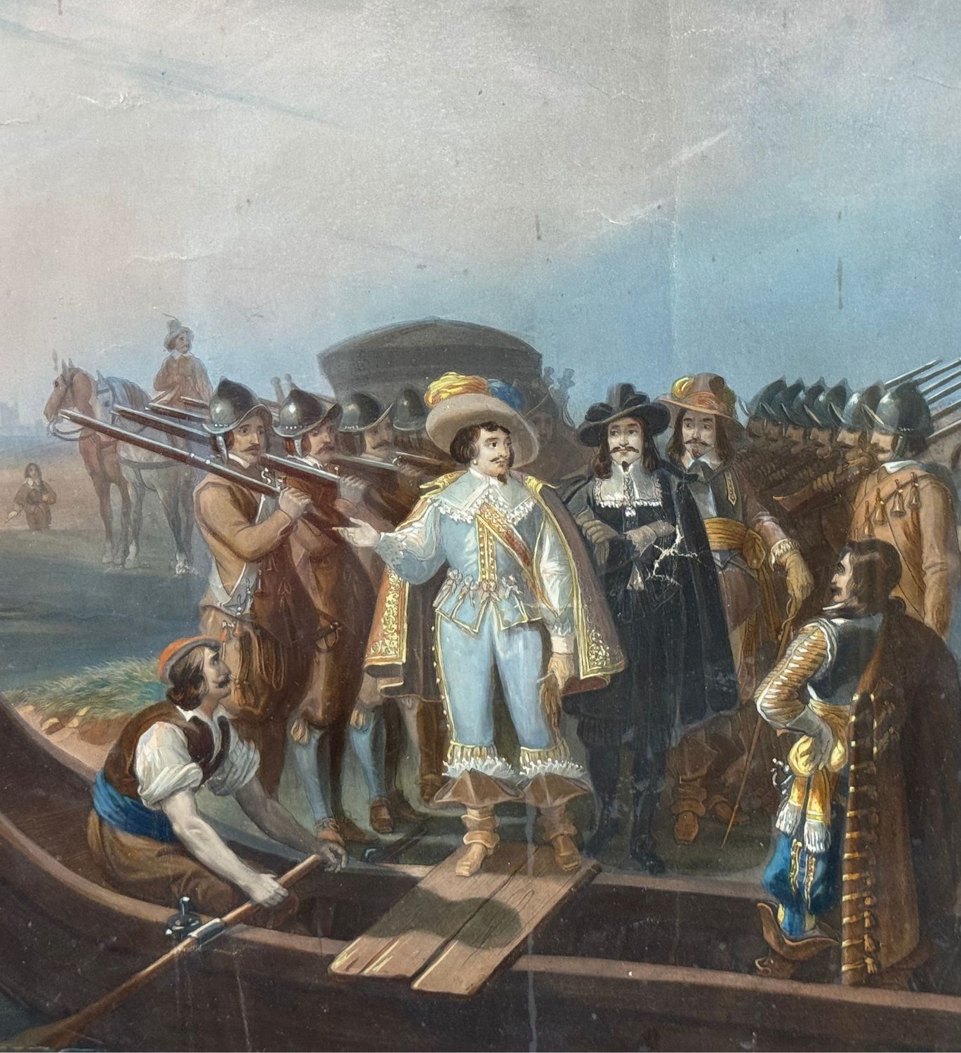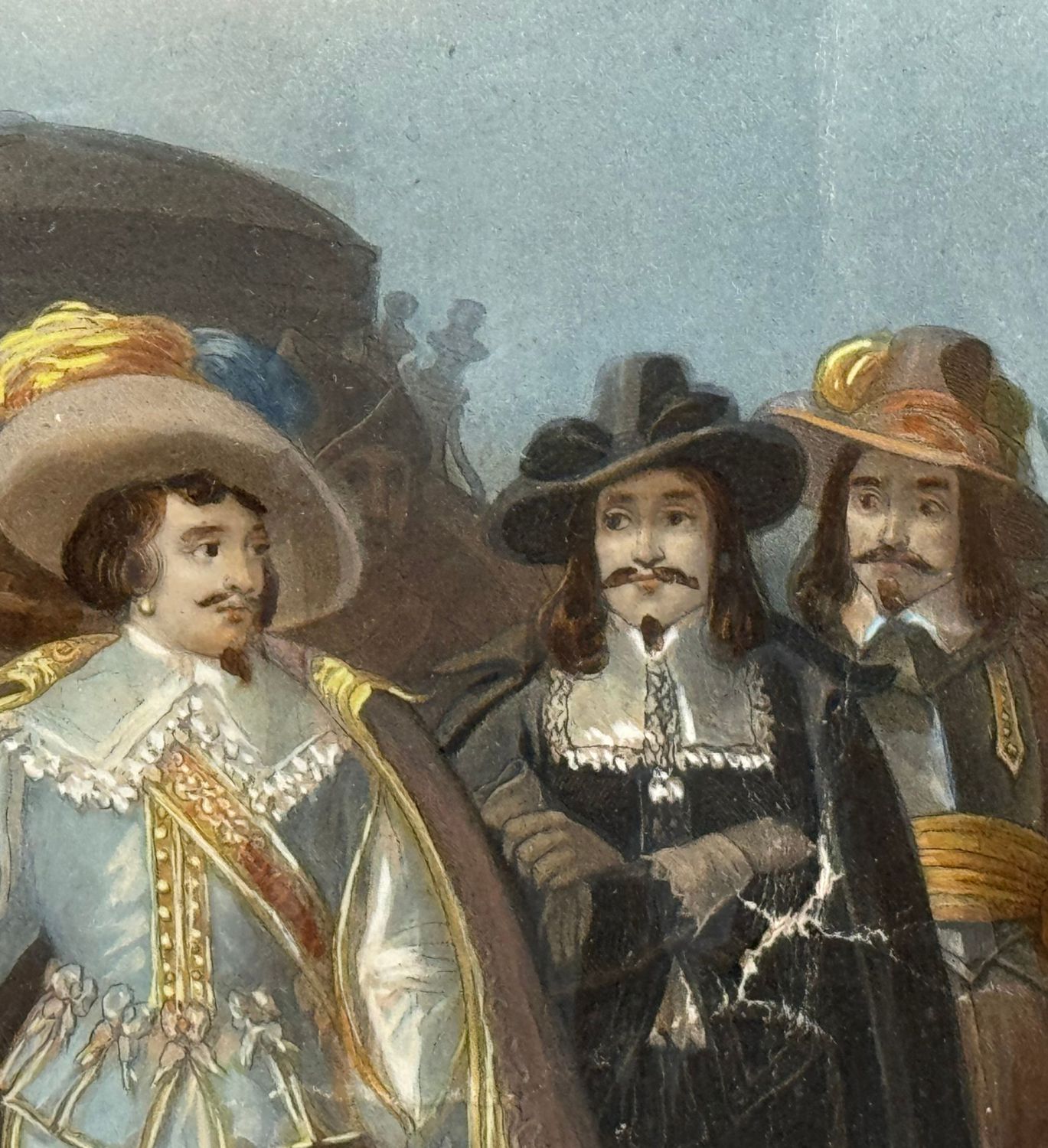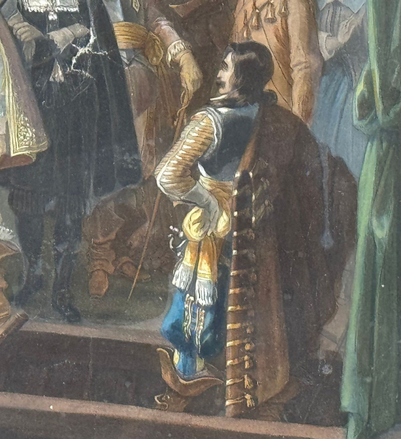 ANONIMO - Dipinto tecnica acquatinta colorata, periodo XIX secolo scuola Francese, raffigurante Cospirazione di Cinq-Mars. Dimensioni compreso cornice: 75x91 cm. Dimensioni interno cornice: 44x57 cm. Da artista anonimo. Opera in discrete condizioni come da foto allegate.