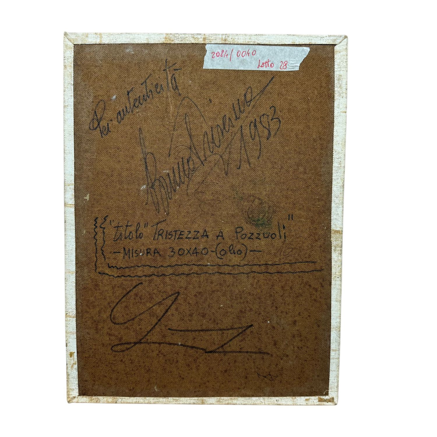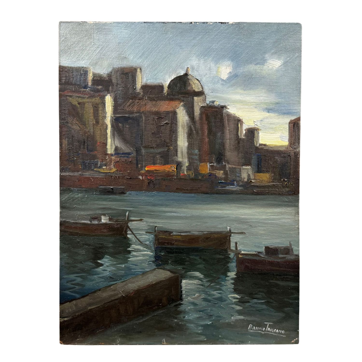 B.TRISCONO - Dipinto olio su pannello, periodo XX secolo scuola italiana, raffigurante Scorcio di Pozzuoli. Dimensioni: 30x40 cm . Reca firma in basso a destra da Bruno Triscono.