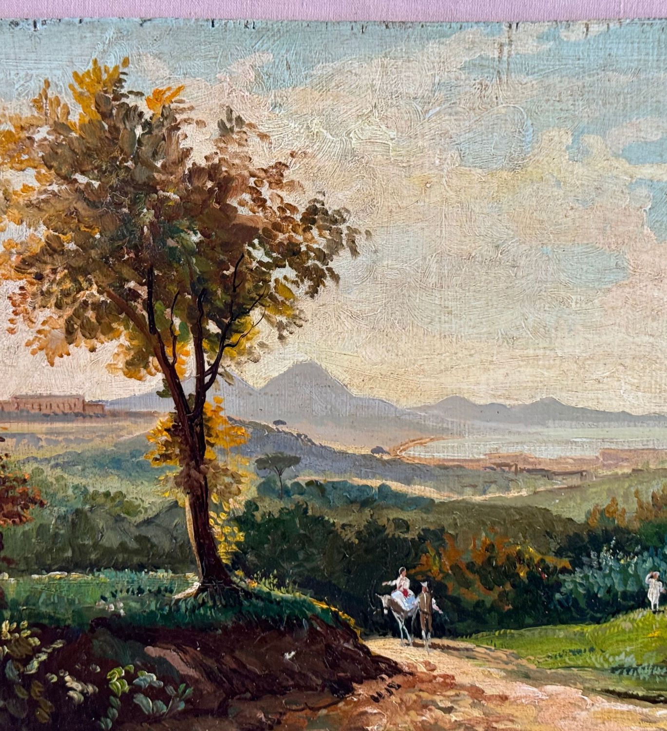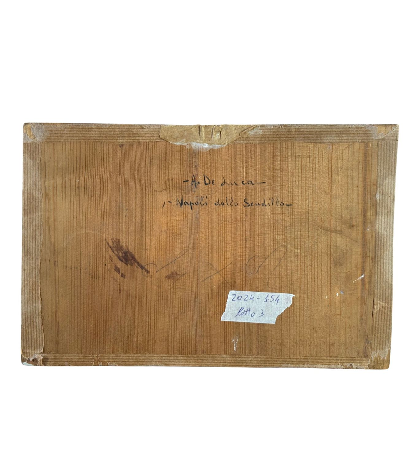 ANONIMO - Dipinto olio su tavola, periodo XIX secolo scuola Italiana, raffigurante Napoli dallo scudillo. Attribuito a A. De Luca. Dimensioni: 30x20 cm. Da artista anonimo. Opera in buone condizioni.