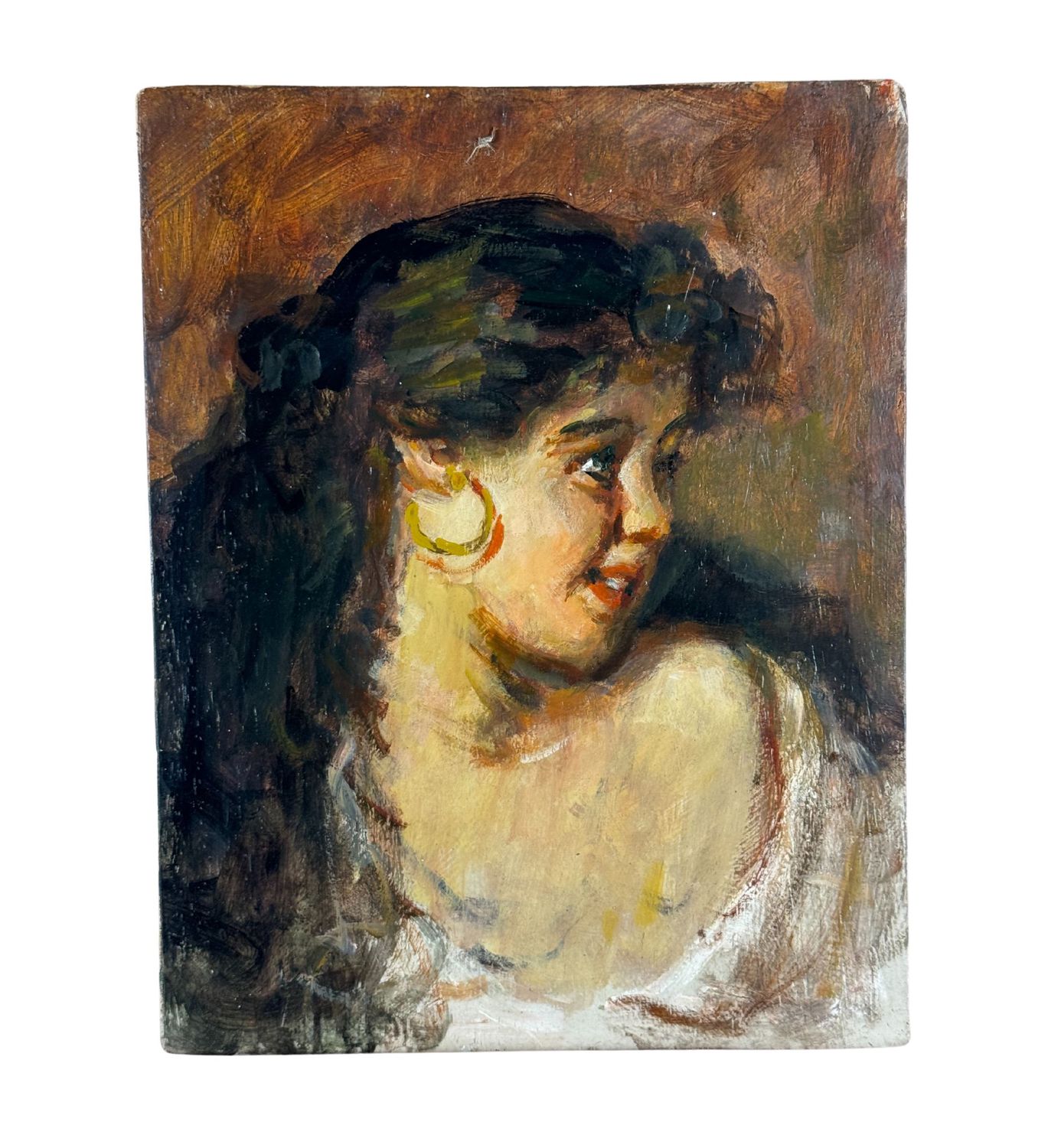 ANONIMO - Dipinto olio su tavola, periodo XX secolo scuola Italiana, raffigurante Ritratto di giovane donna. Dimensioni: 27,5x21,5 cm. Artista anonimo. Opera in buone condizioni.