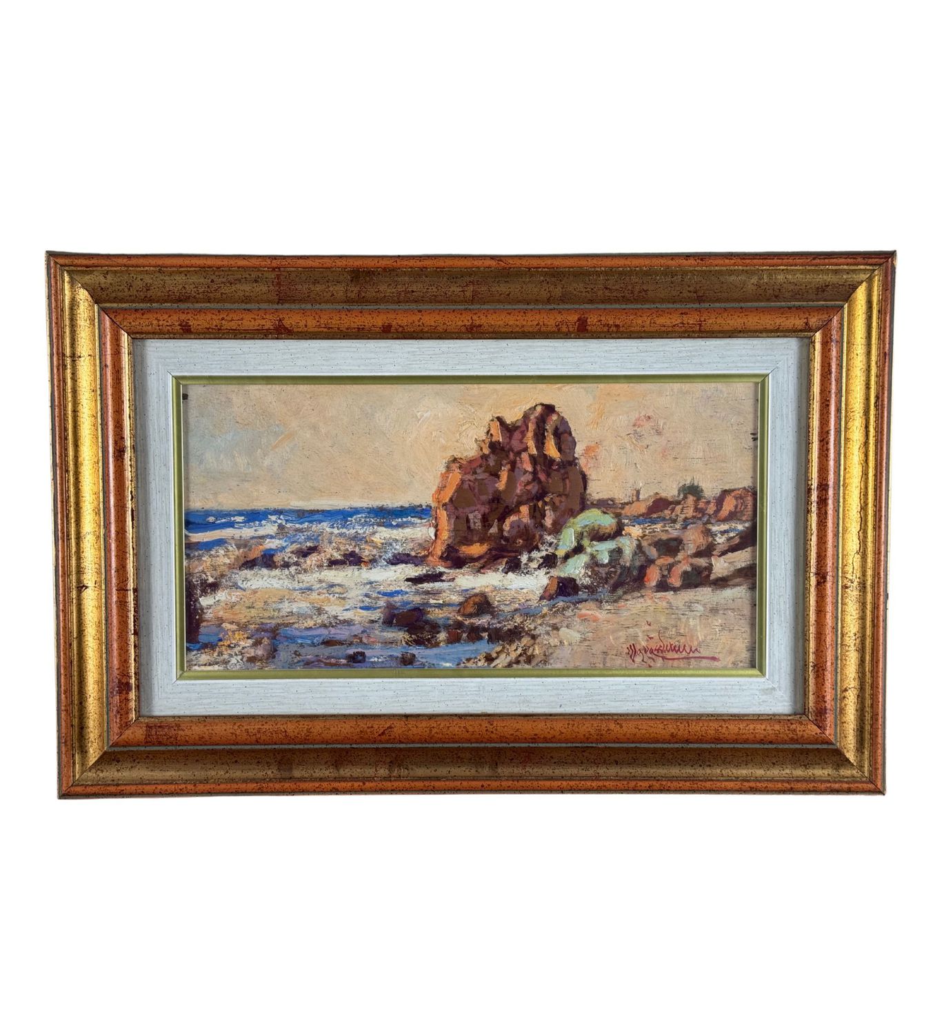 SCUOLA NAPOLETANA - Dipinto olio su tavola, XX secolo scuola Napoletana, raffigurante Scrocio di marina. Dimensioni compreso cornice: 54x35 cm. Dimensioni interno cornice: 38x20 cm. Reca firma in basso a destra artista non identificato. Opera in buone condizioni.