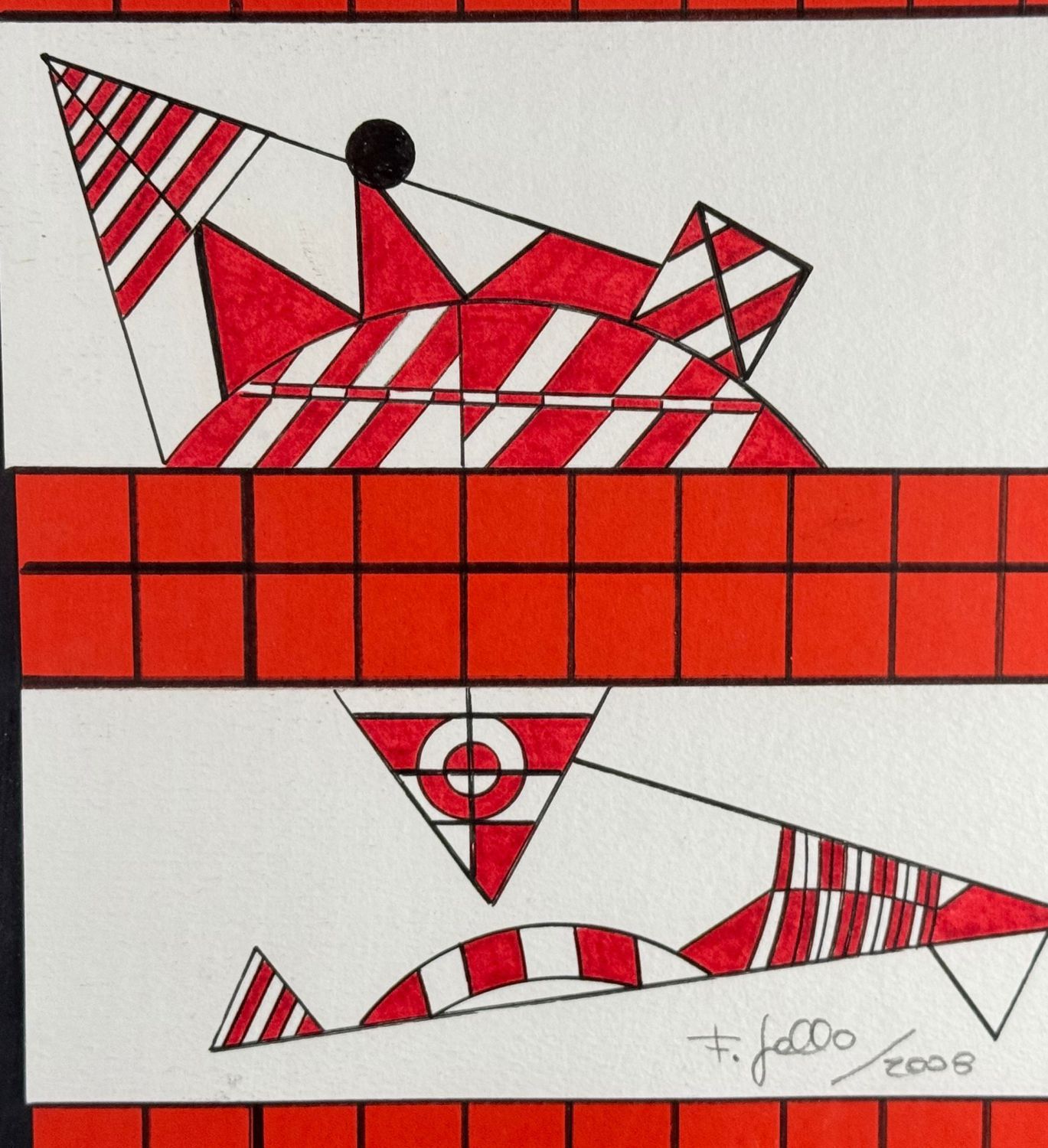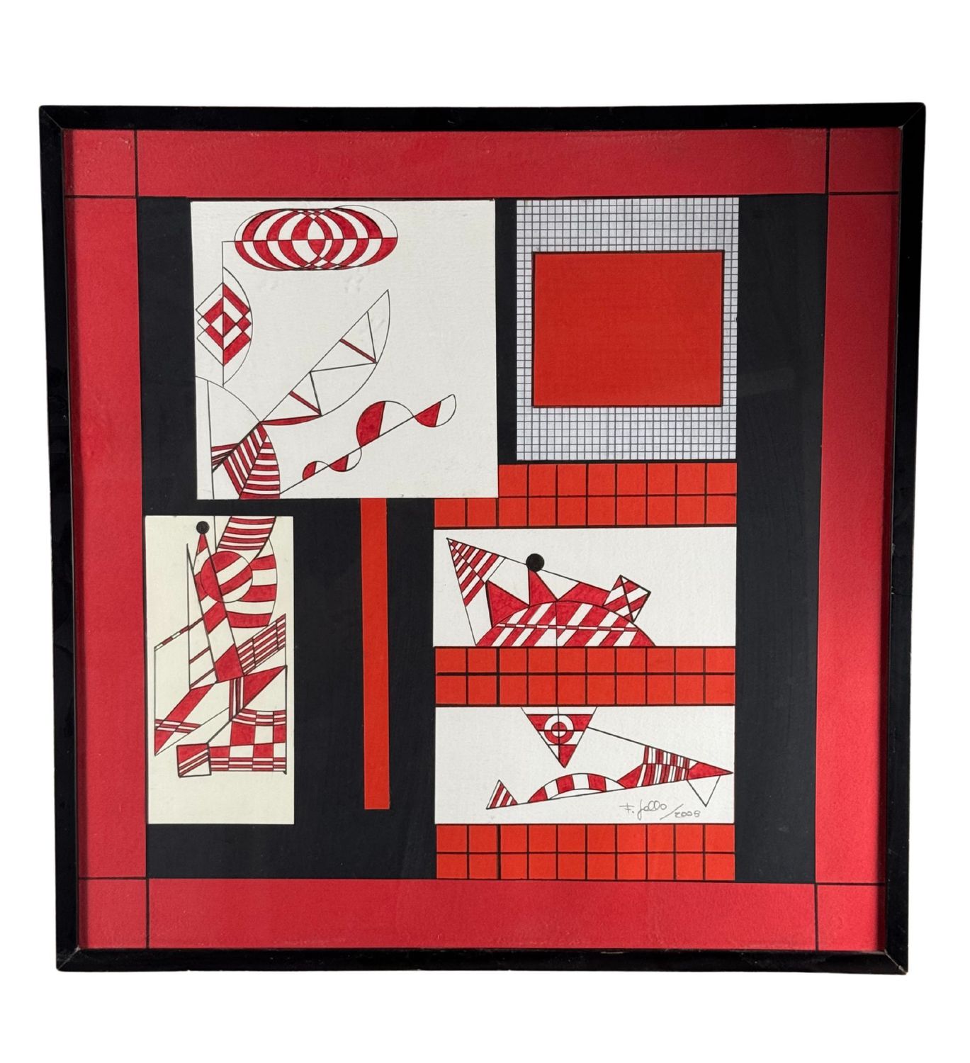 Francesco Gallo - Disegno su carta, periodo XX secolo scuola Italiana, raffigurante SENZA TITOLO. Dimensioni compreso cornice: 57x57 cm. Dimensioni interno cornice: 54x54 cm. Reca firma in basso a destra Francesco Gallo (2008). Opera in buone condizioni.
