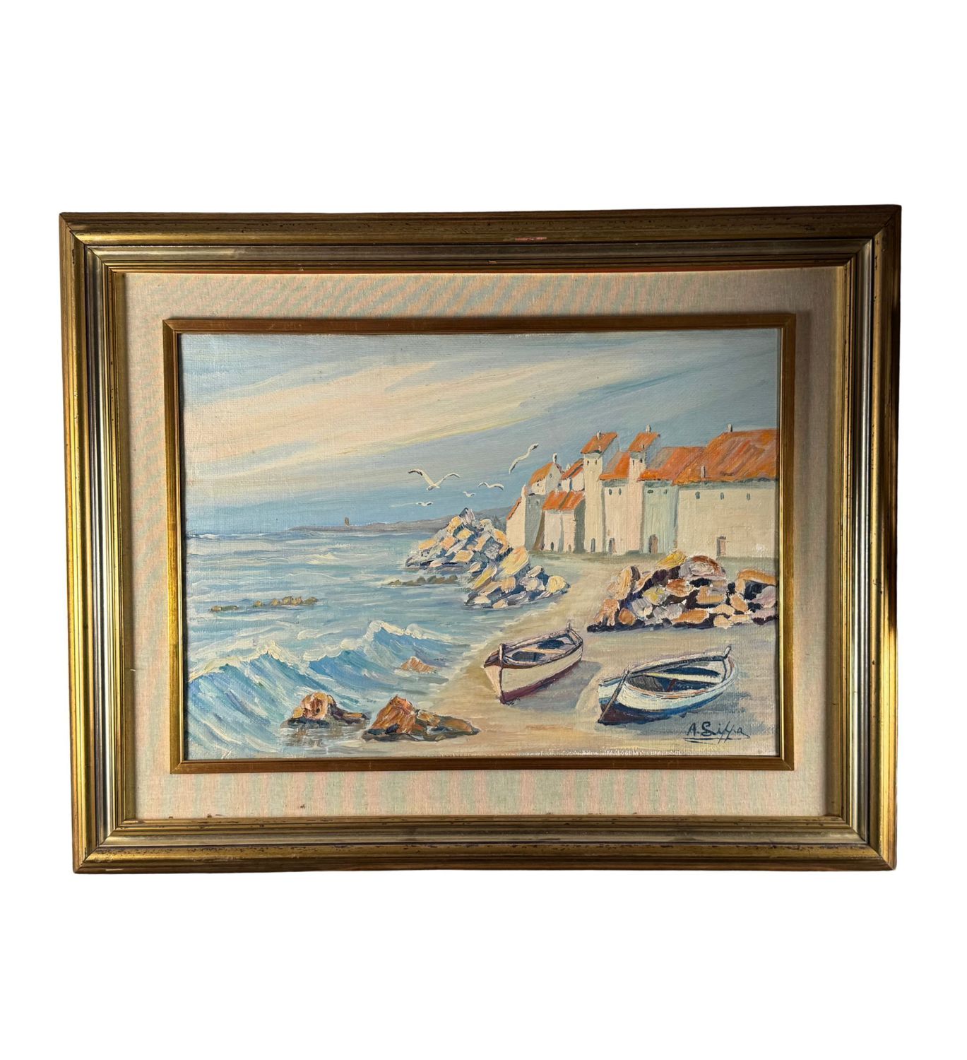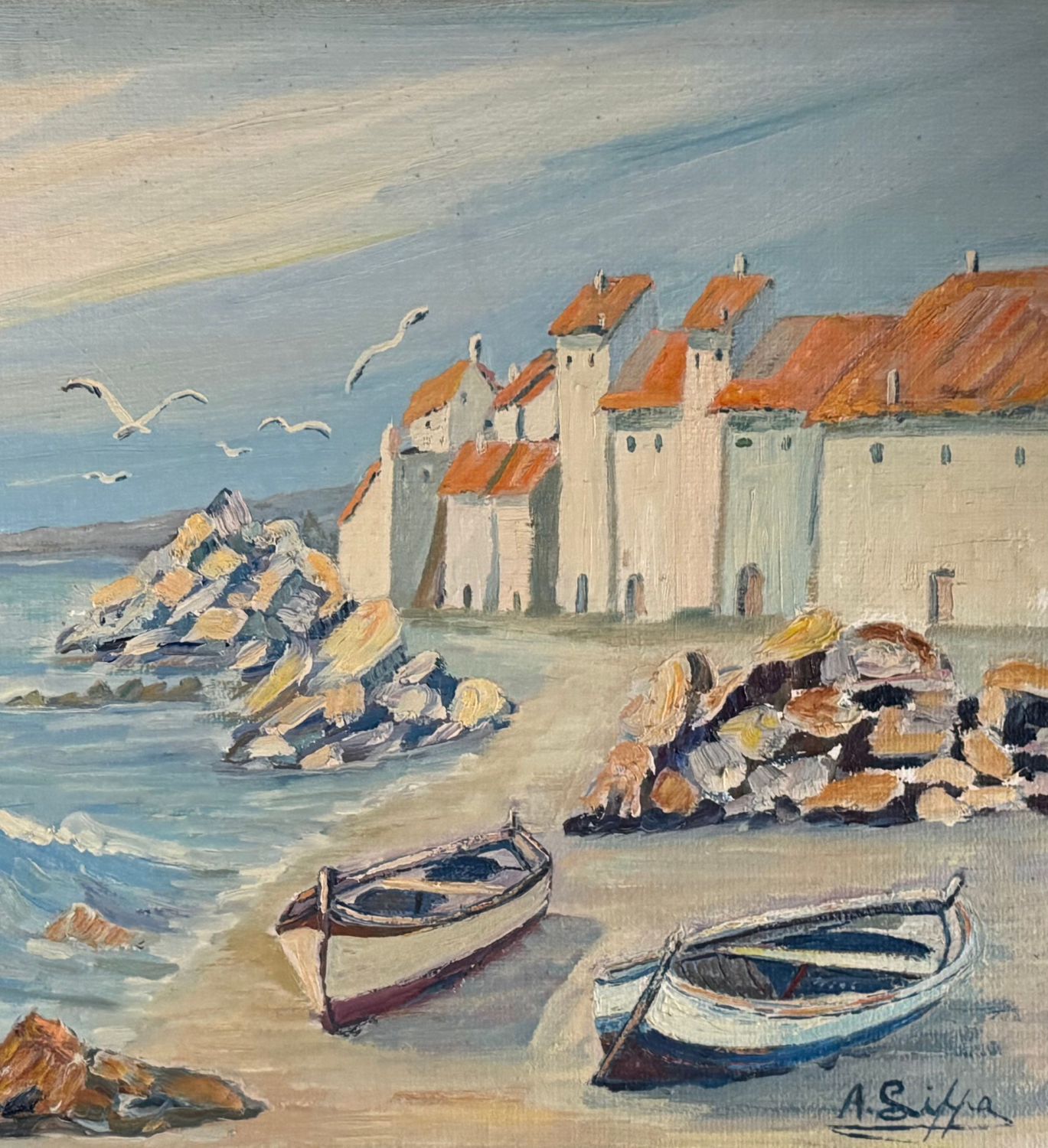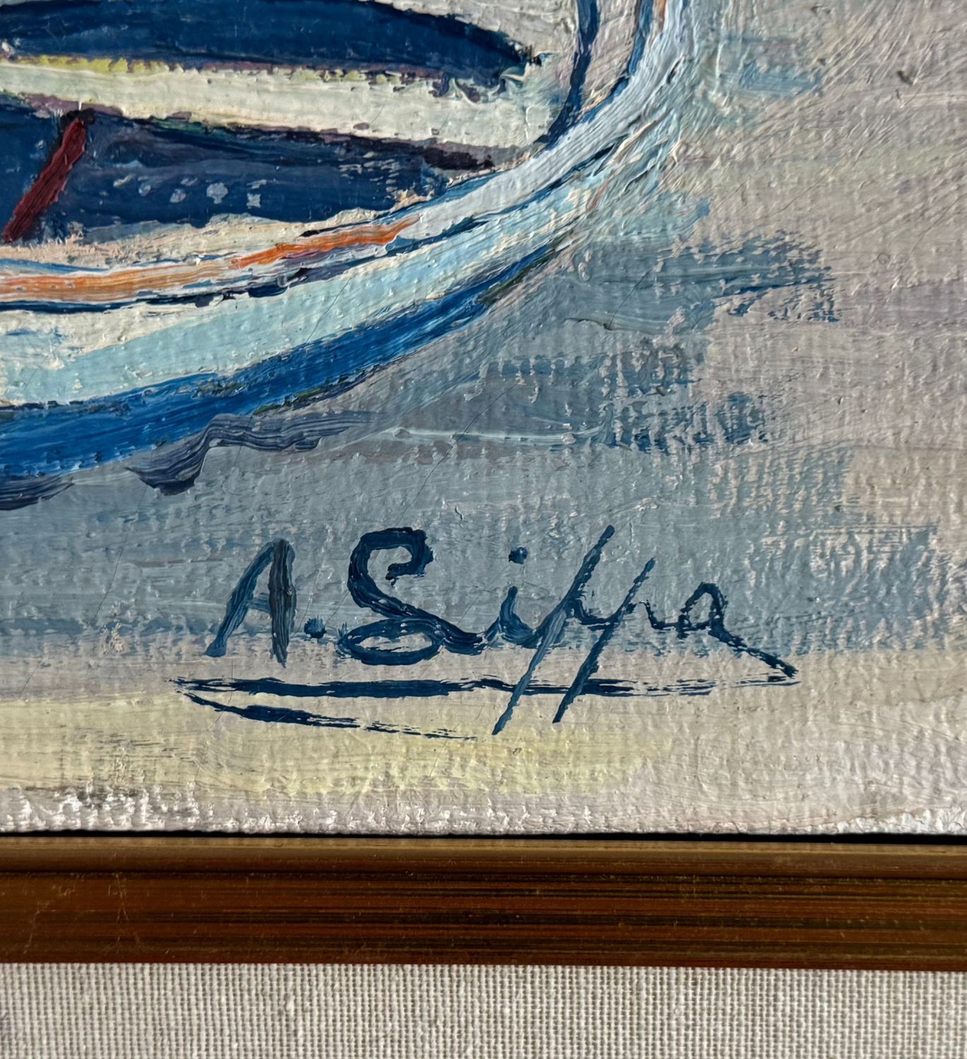 A. Siffa - Dipinto olio su tela, periodo XX secolo scuola Italiana, raffigurante Marina con barche. Dimensioni compreso cornice: 78x98 cm. Dimensioni interno cornice: 70x50 cm. Reca firma in basso a destra A. Siffa. Opera in buone condizioni.