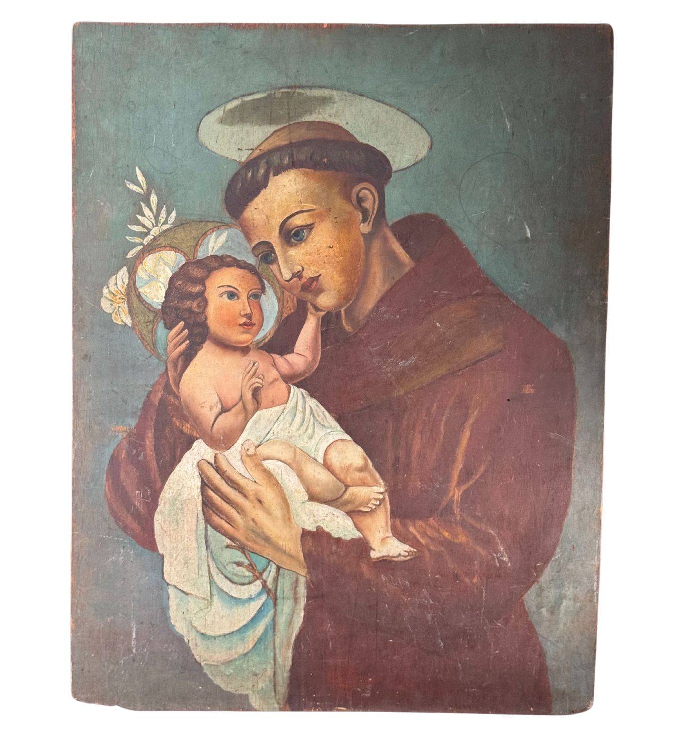 SCUOLA ITALIANA - Dipinto olio su tavola, periodo XIX secolo scuola Italiana, raffigurante Sant'Antonio. Dimensioni: 60x46 cm. Opera in buone condizioni con lievi segni di vissuto come da foto allegate.