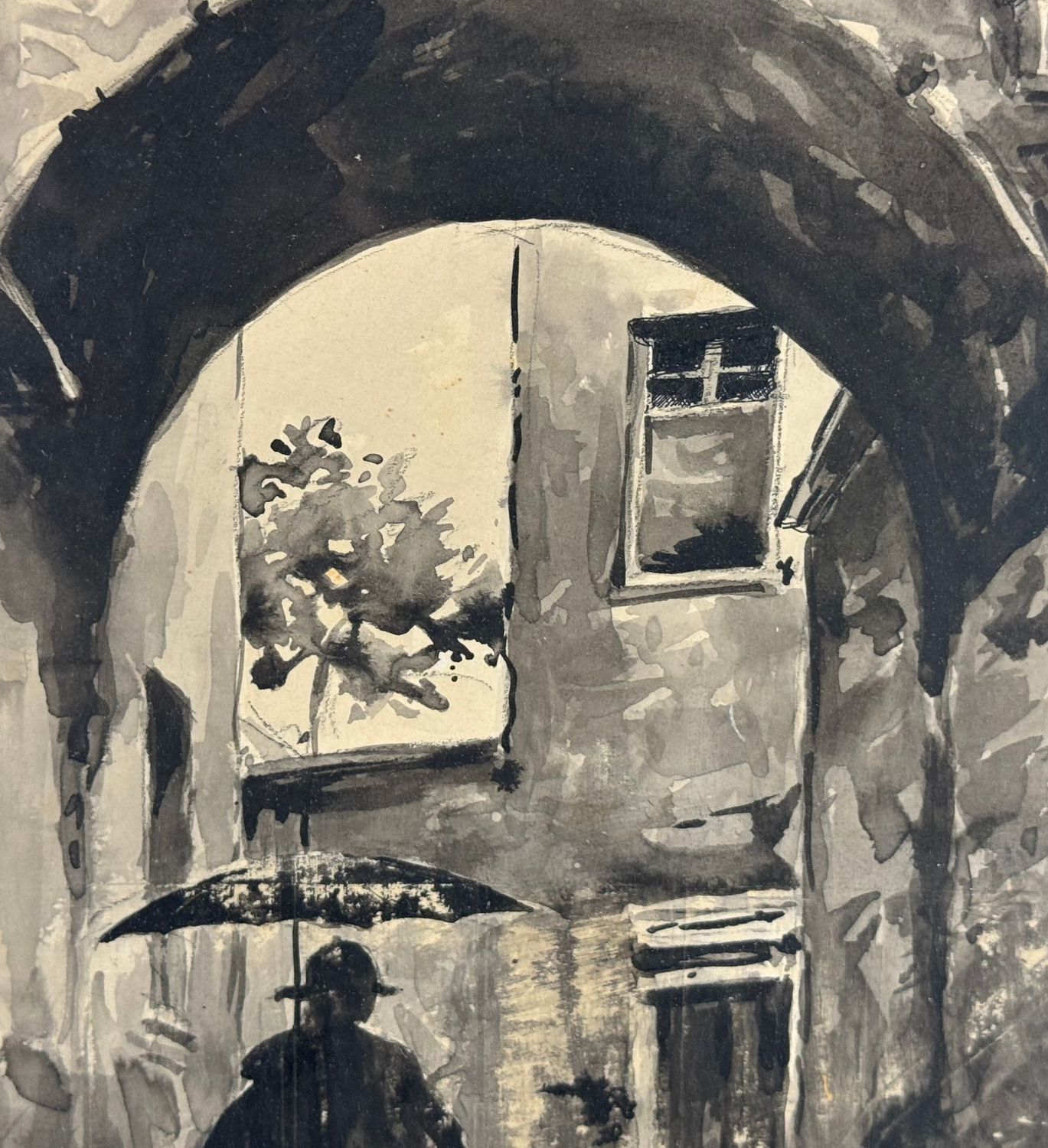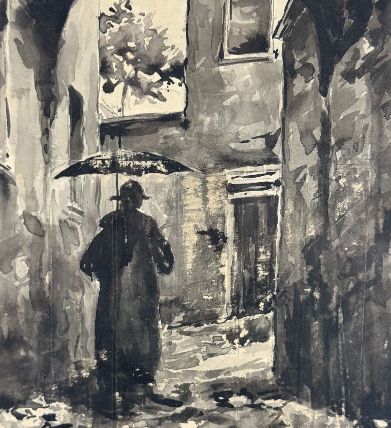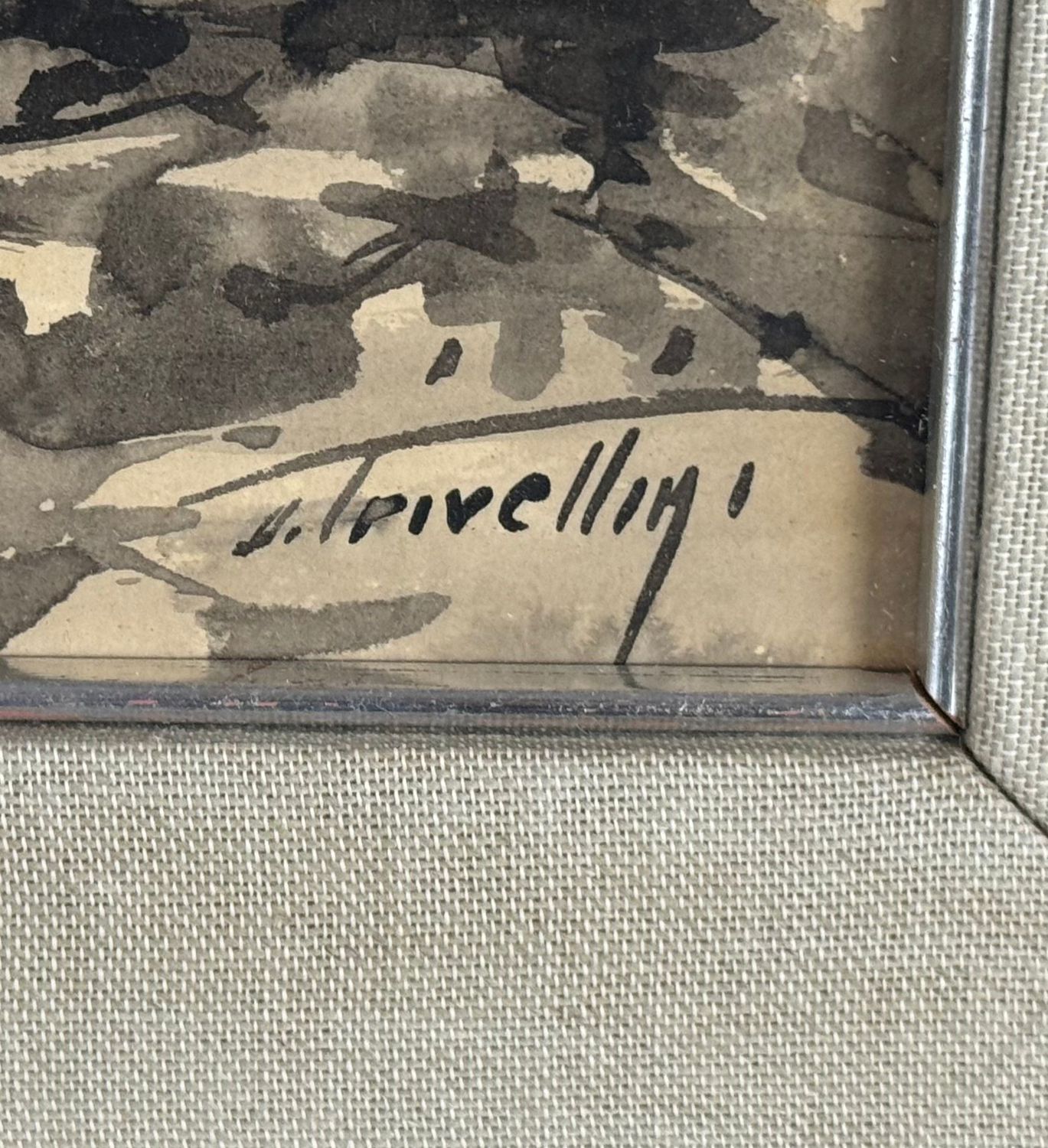 A. Trivellini - Dipinto acquerello su carta, periodo XX secolo, scuola Italiana, raffigurante Stradina con personaggio. Dimensioni compreso cornice: 40x51 cm. Dimensioni interno cornice: 24x35 cm. Firmato in basso a destra A. Trivellini. Opera in buone condizioni.