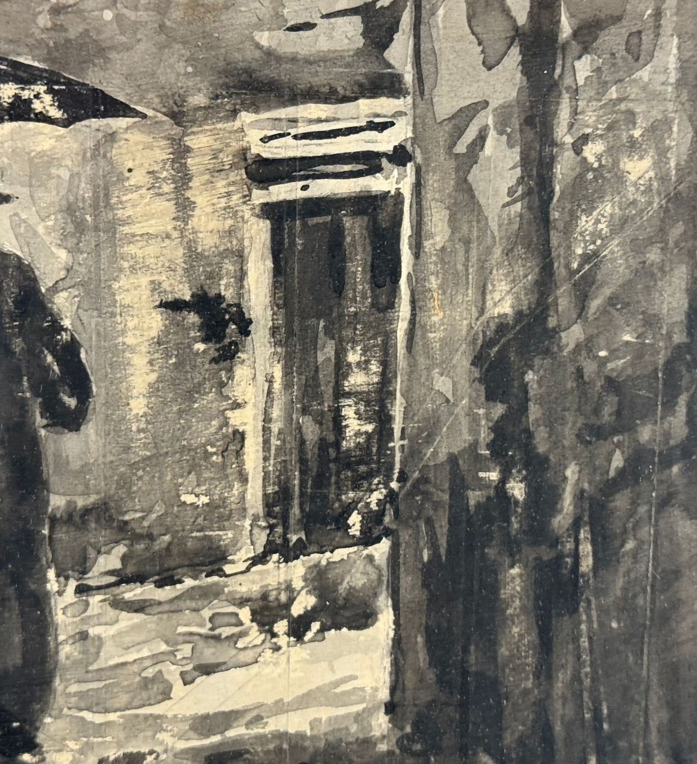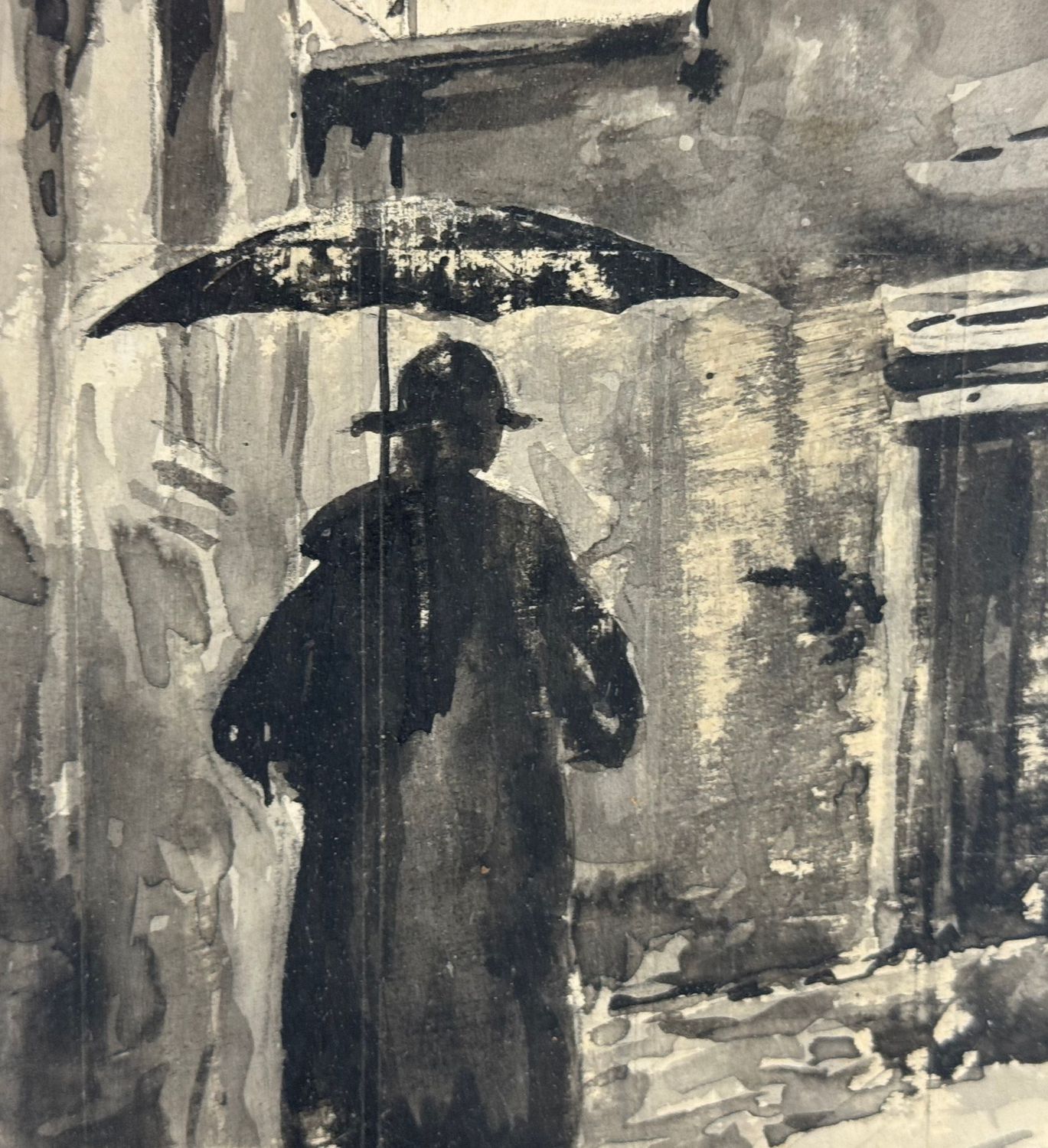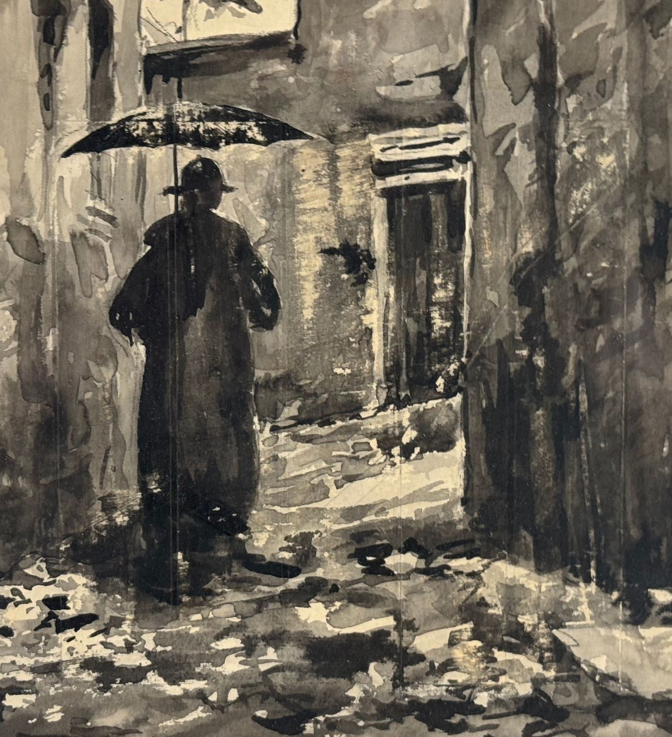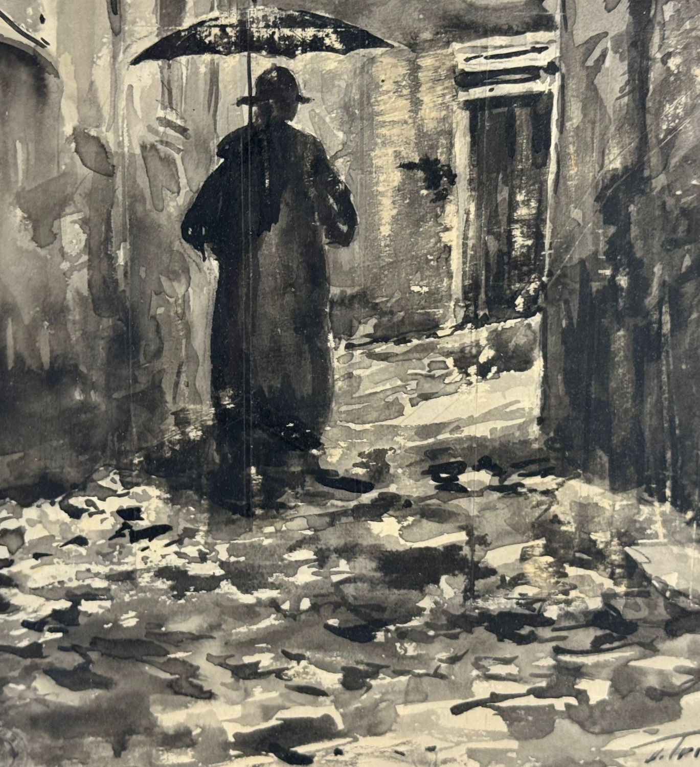 A. Trivellini - Dipinto acquerello su carta, periodo XX secolo, scuola Italiana, raffigurante Stradina con personaggio. Dimensioni compreso cornice: 40x51 cm. Dimensioni interno cornice: 24x35 cm. Firmato in basso a destra A. Trivellini. Opera in buone condizioni.