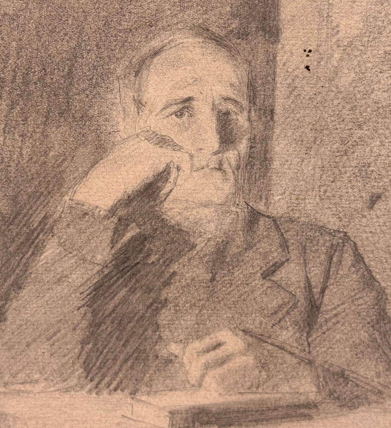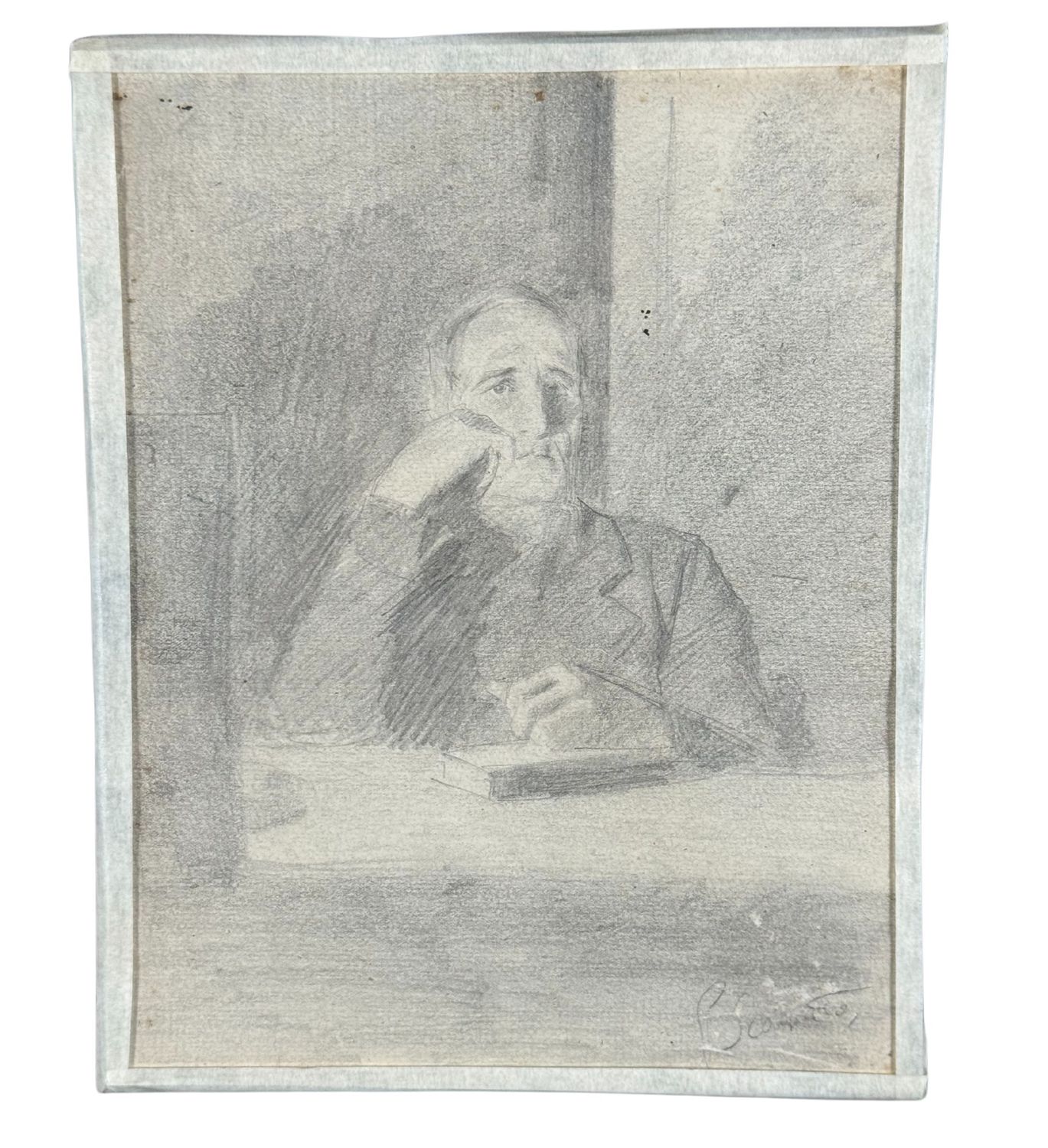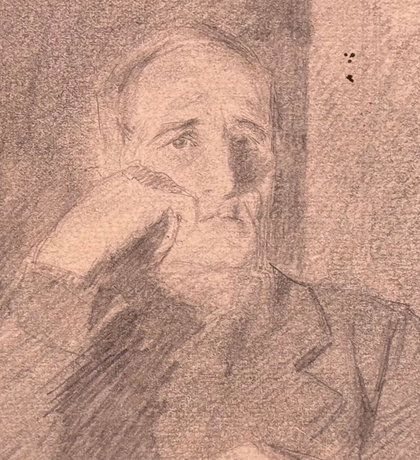 SCUOLA ITALIANA - Disegno su carta, periodo XX secolo scuola Italiana raffigurante Ritratto di studioso. Dimensioni: 17x22 cm. Traccia di firma in basso a destra. Opera in buone condizioni con lievi segni di vissuto.