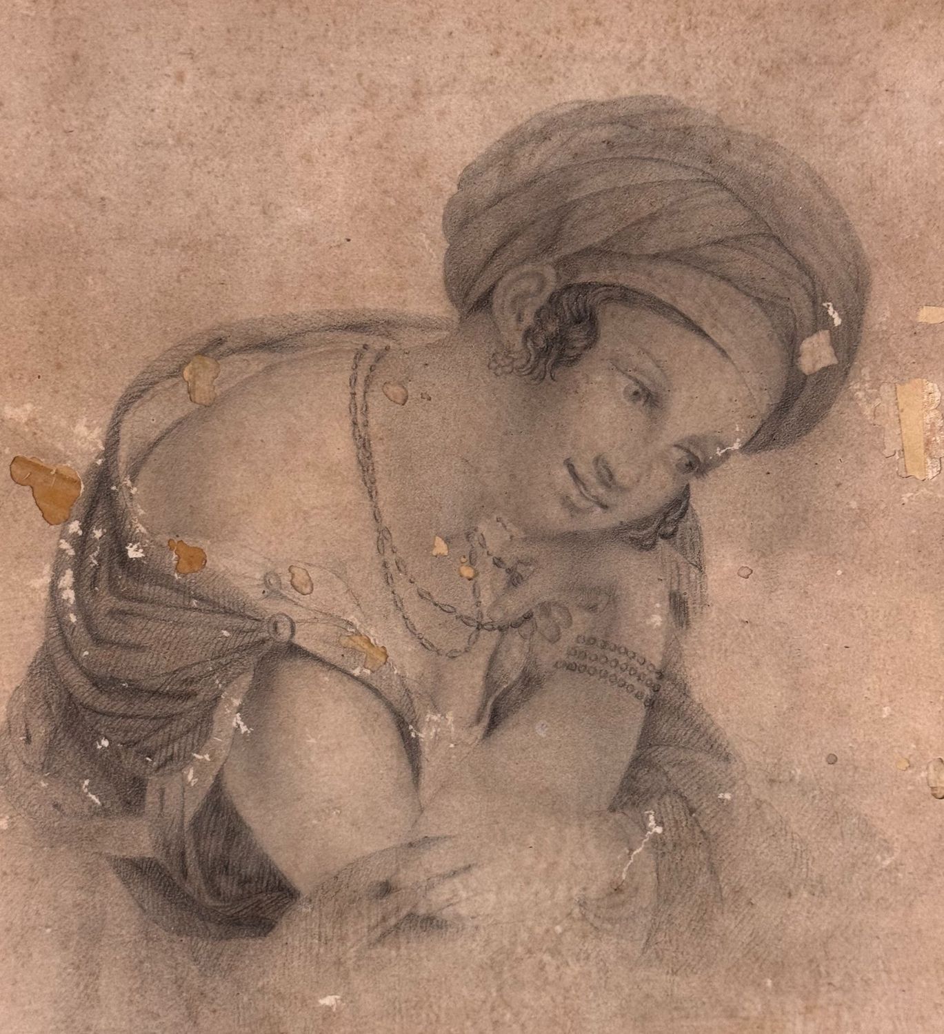 ANONIMO - Disegno su carta, periodo XX secolo scuola Italiana raffigurante Ritratto di donna. Dimensioni: 25x33 cm. Artista anonimo. Opera in discrete condizioni con lievi segni di vissuto come da foto allegate.