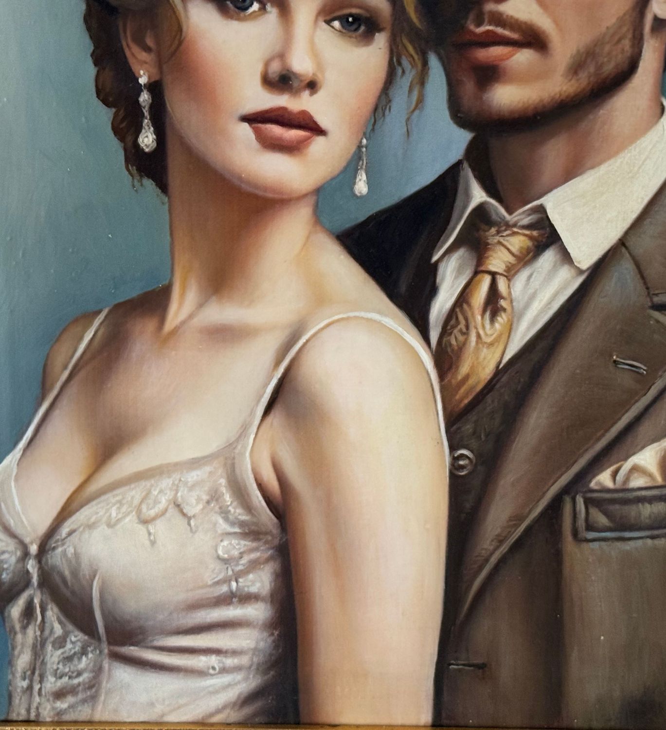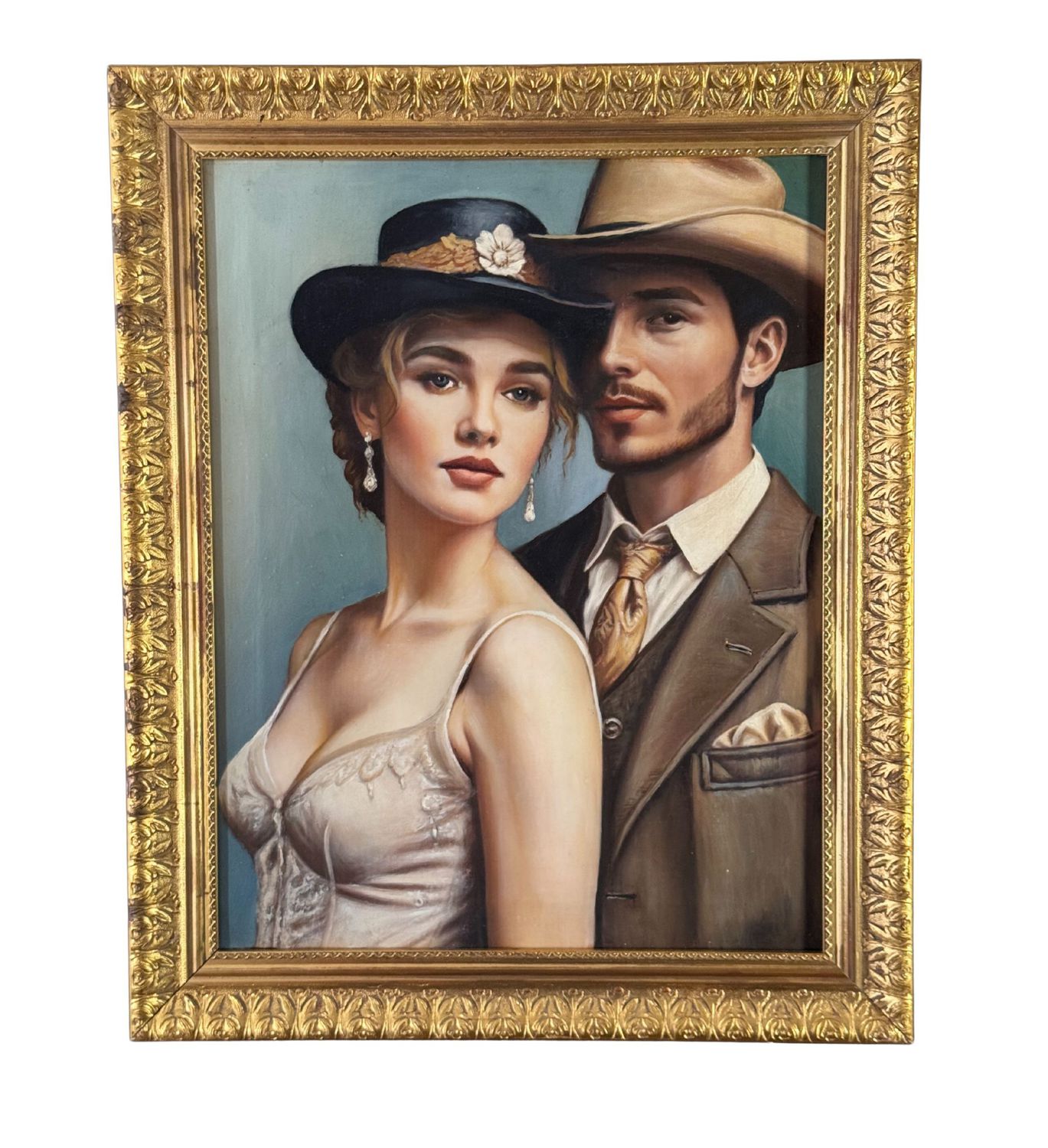 SCUOLA ITALIANA - Dipinto olio su tela, periodo XX secolo scuola Italiana raffigurante Ritratto di due amanti in abiti eleganti. Dimensioni compreso cornice: 51x62 cm. Dimensioni interno cornice: 40x52 cm.Artista anonimo. Opera in buone condizioni.